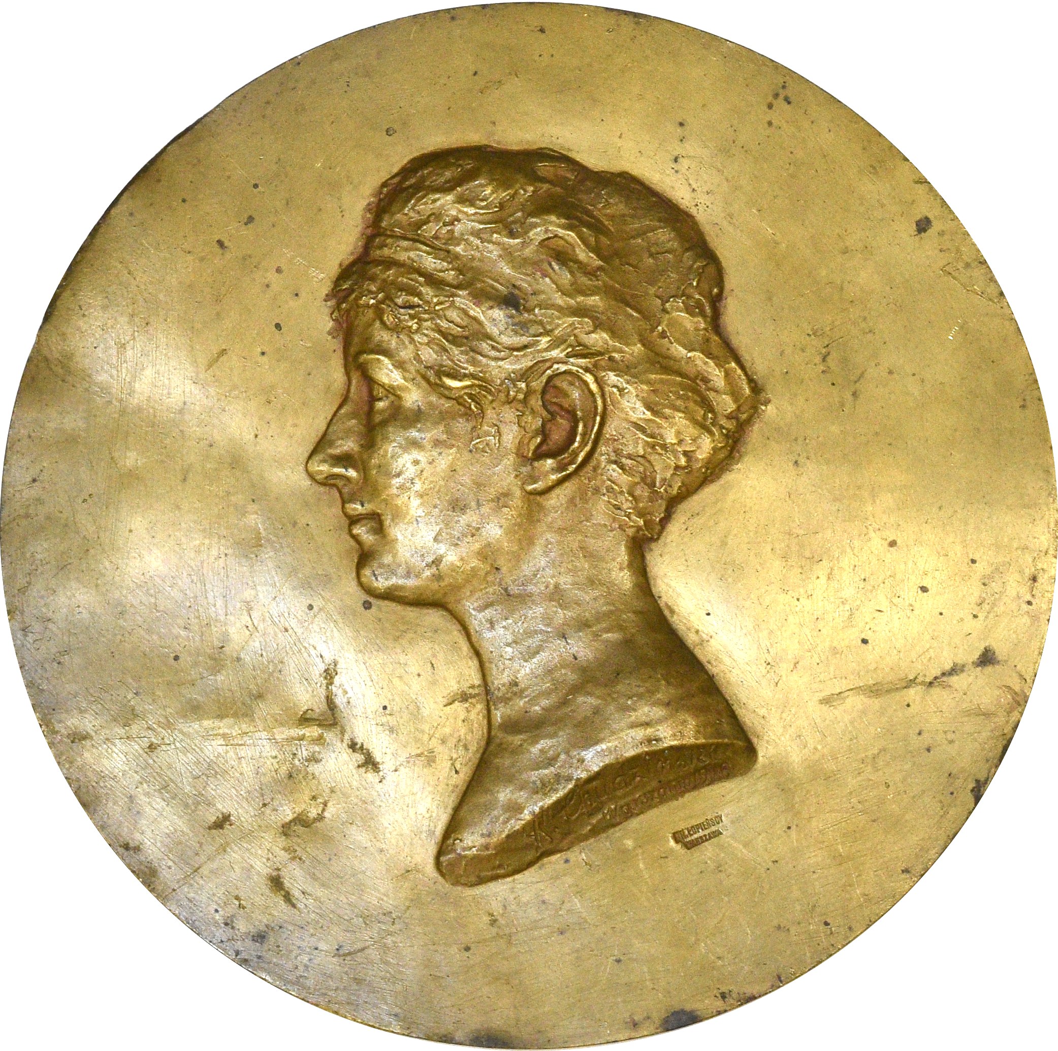 Piękny medalion z wizerunkiem młodej kobiety zaprojektowany przez K. Chudzińskiego w 1918 roku.