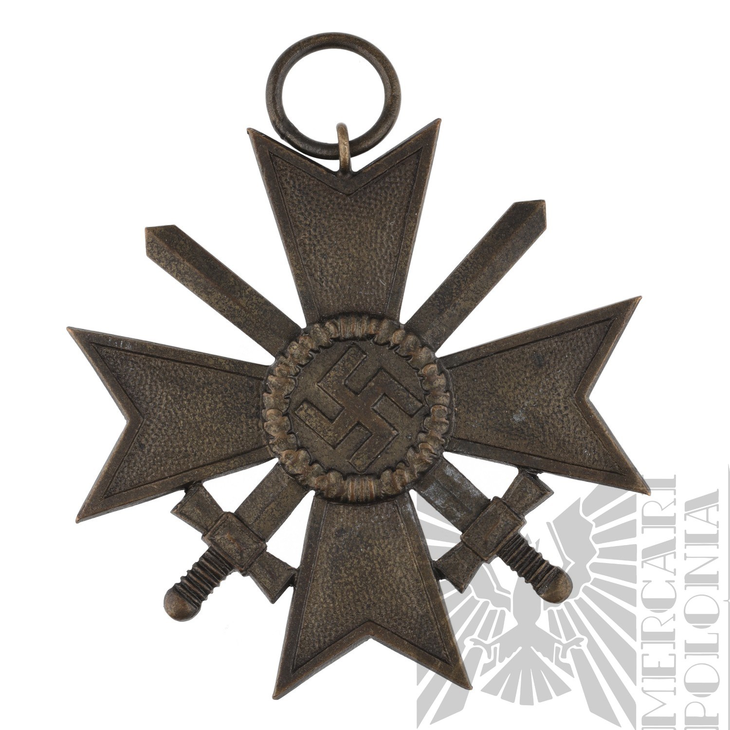 Odznaka ma formę krzyża maltańskiego o lekko rozszerzających się ramionach, o chropowatej fakturze powierzchni. W centralnej części znajduje się wieniec laurowy z wpisaną swastyką – symbolem nazistowskim i skrzyżowanymi mieczami. Krzyż zawieszony jest na wstążce w barwach czarno-biało-czerwonych, czyli narodowych barwach niemieckich tamtego okresu.