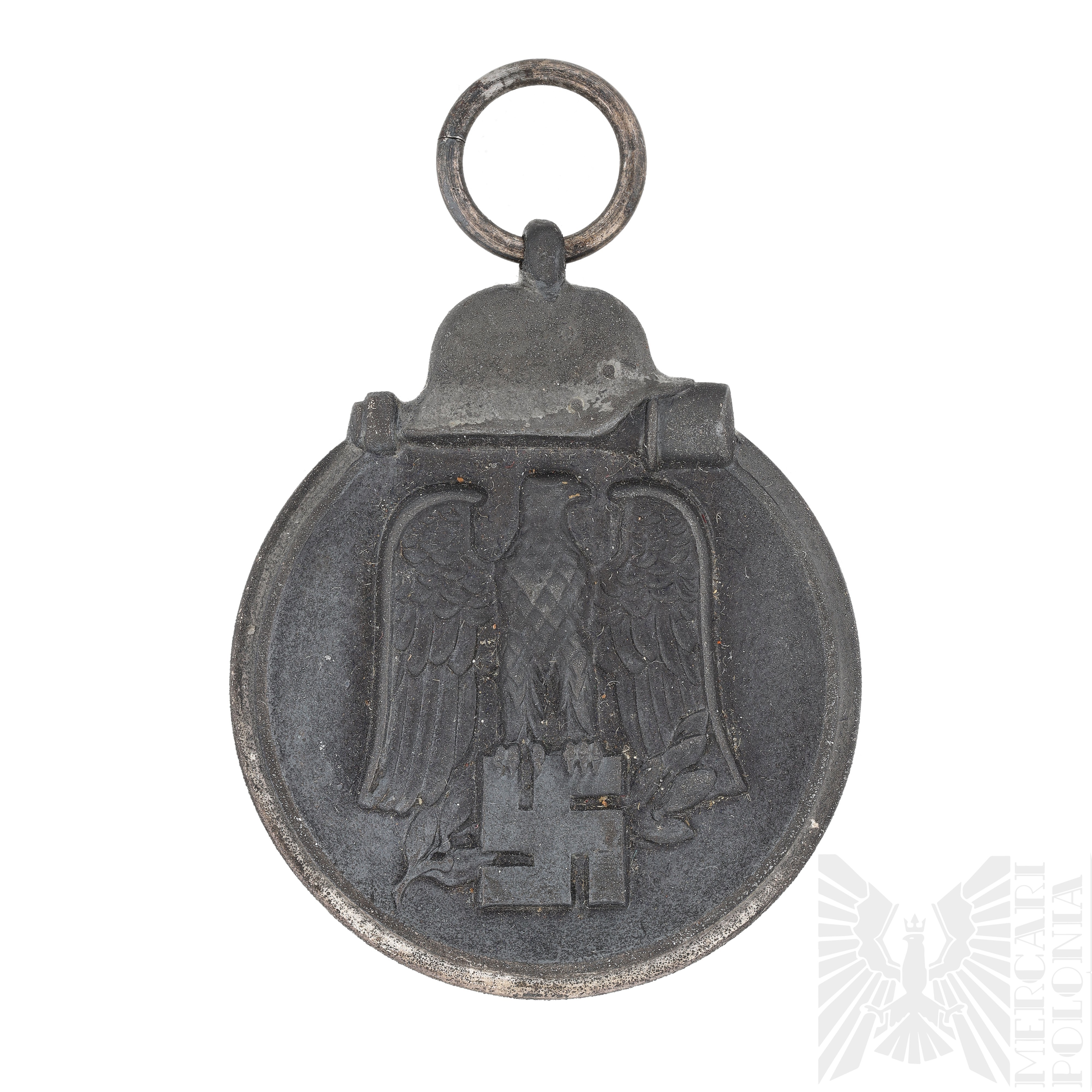 Medal Winterschlacht im Osten 1941/42 ma okrągły kształt, z wyraźną krawędzią na obwodzie. Awers jest lekko wklęsły, a rewers wypukły. Po obu stronach znajduje się wizerunek hełmu Wehrmachtu i granatu trzonkowego. Na awersie widoczny jest orzeł Wehrmachtu trzymający swastykę, za którą znajduje się gałązka laurowa. Rewers zawiera napis „WINTERSCHLACHT IM OSTEN 1941/1942” oraz motyw gałązki laurowej skrzyżowanej z mieczem. Na górze medalu znajduje się oczko do zawieszenia na wstążce.