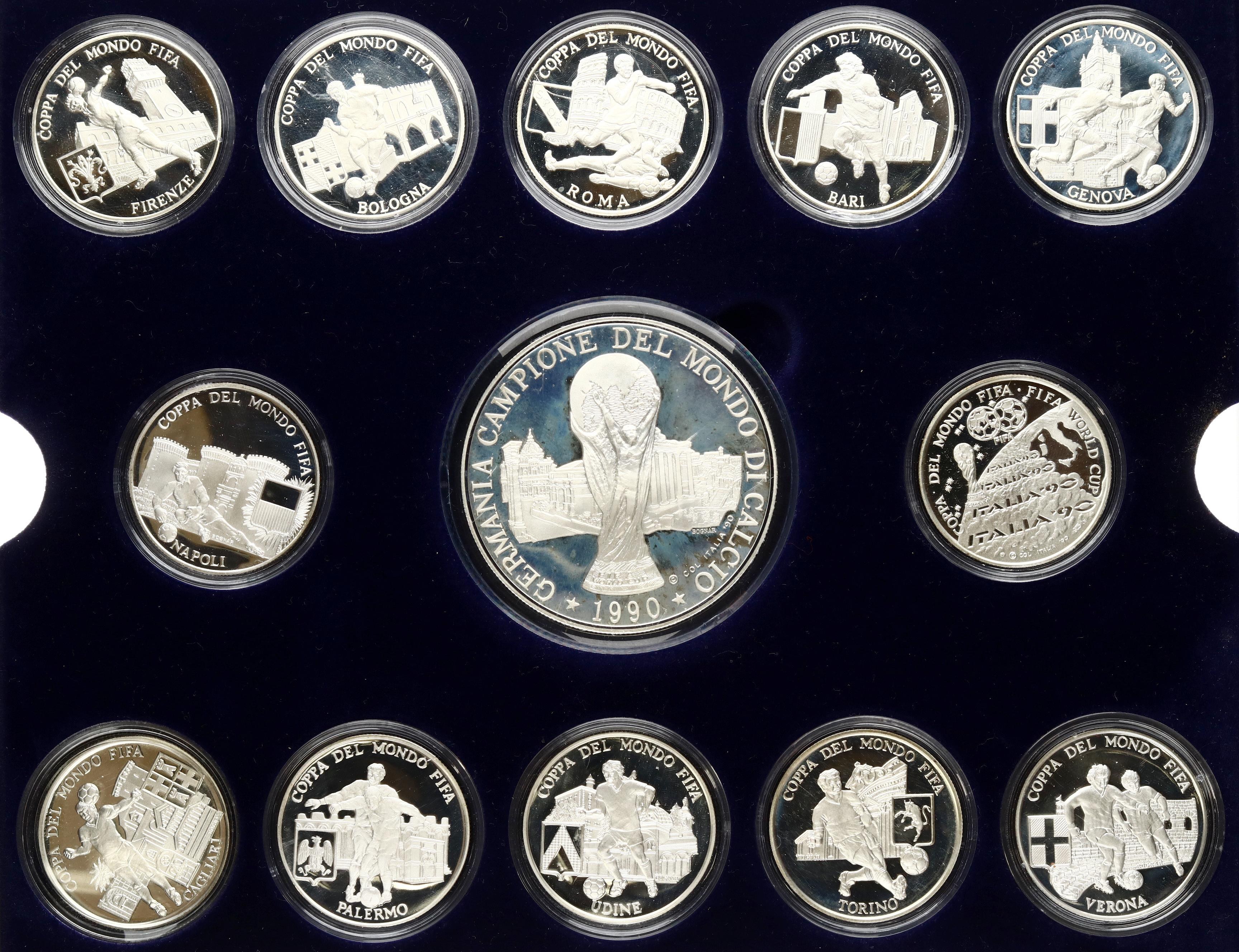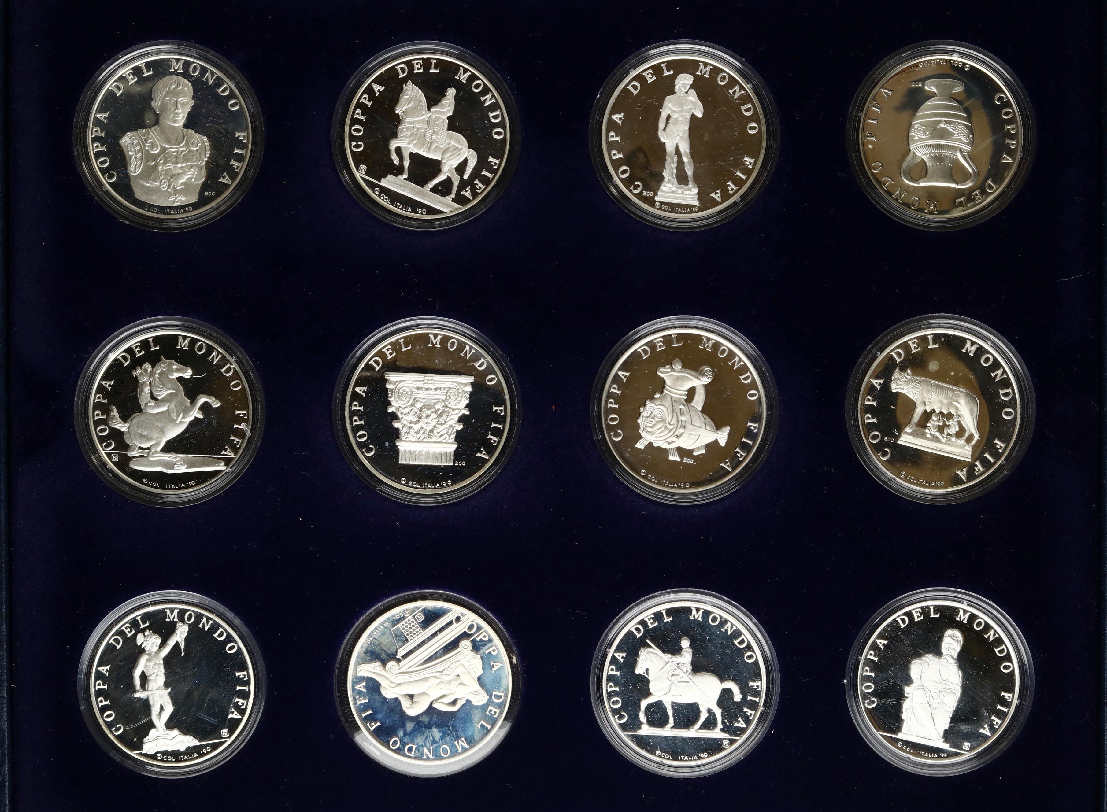 Italy Medal FIFA world cup 1990 Set. Silver .925, 38.6 - 62 mm., total weight 688.74 g. Max. Mintage 25000 collections. With box & certificate. Damage box. Lot of 25 pcs