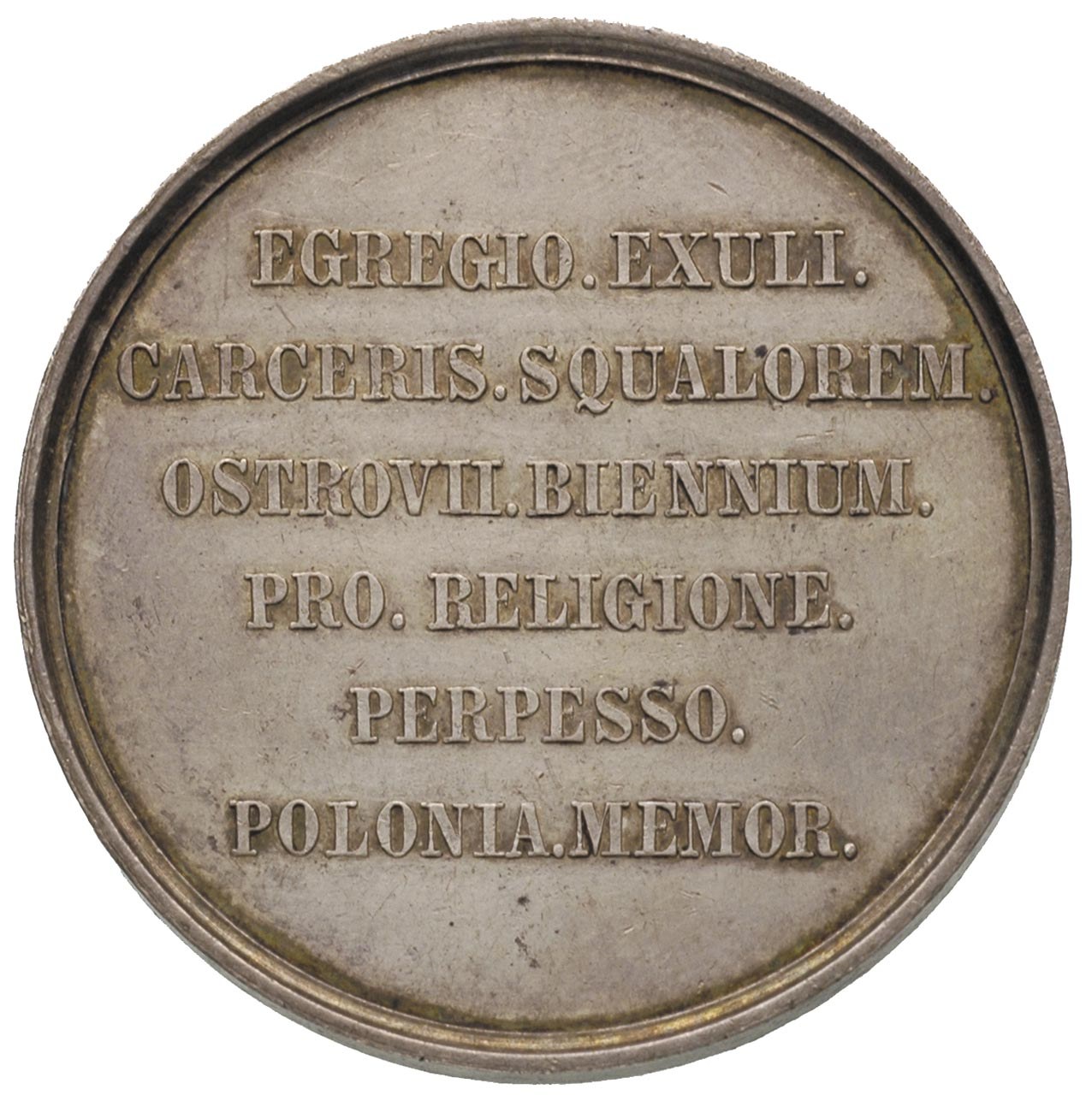 POLSKA, kardynał Mieczysław Ledóchowski - medal wybity w 1877 r., z okazji uwięzienia w Ostrowiu, Aw: Popiersie w prawo i napis, Rw: Napis poziomy EGREGIO EXULI CARCERIS SQUALOEM..., srebro 20.98 g, 39.2 mm, H-Cz. 8089