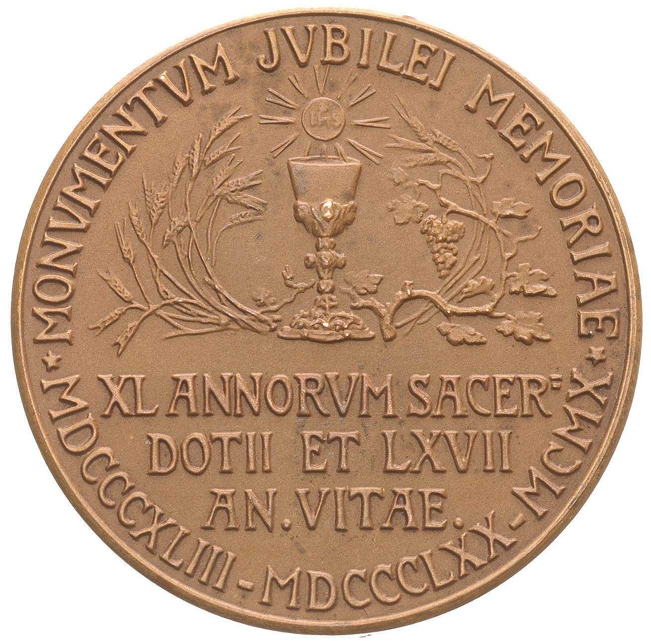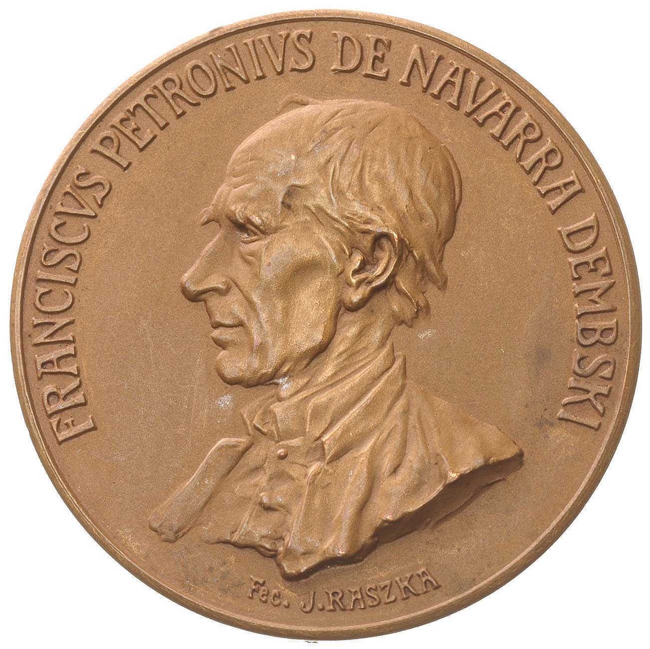 POLSKA, ks.Franciszek Dembski- 40-lecie święceń kapłańskich-medal autorstwa J. Raszki 1910 r, Aw: Popiersie w lewo i napis, Rw: Kielich mszalny, nad nim hostia, napis w otoku, Strzałk. 180 R, brąz 40 mm