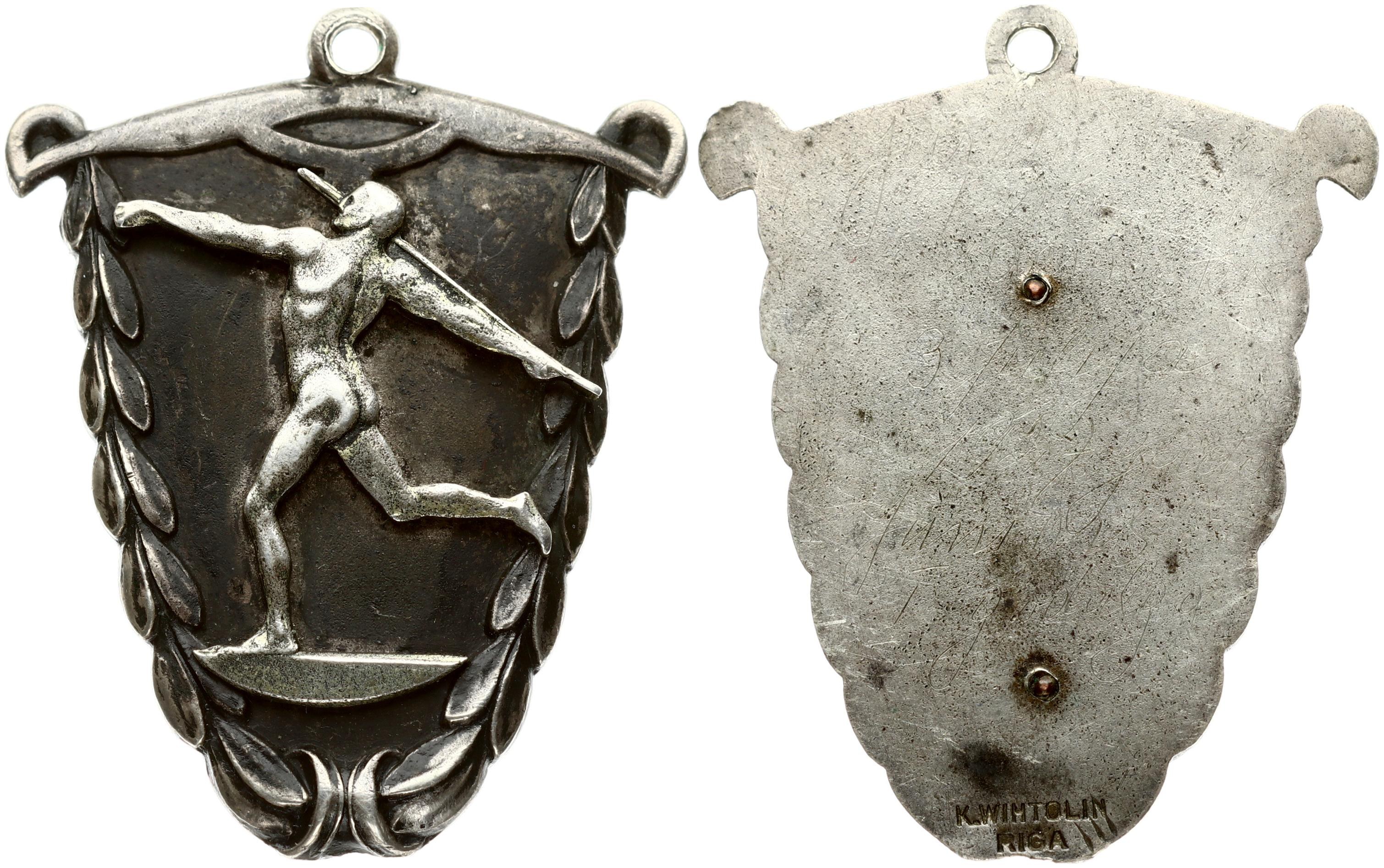 Latvia Sport Badge (20th Century) Riga. K. Wihtolin. Silver. Weight approx: 14.46g. Diameter: 42x33 mm.