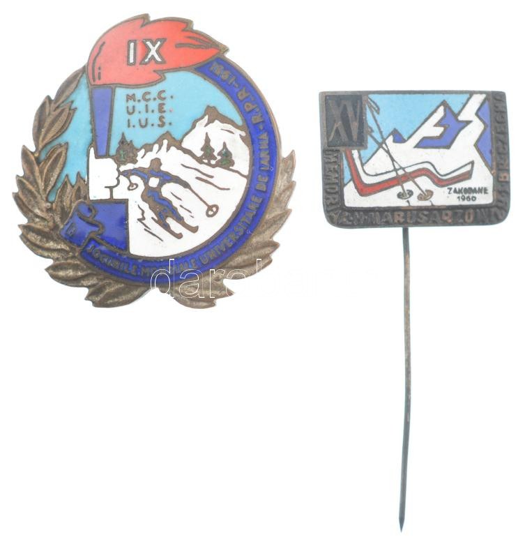 Lengyelország 1960. "XV. H. Marusarzówna Emlékverseny - Zakopane, 1960" zománcozott bronz sí jelvény + Románia 1951. "IX. Téli Egyetemi Világjátékok" zománcozott bronz sí jelvény T:2 kis zománchibák
