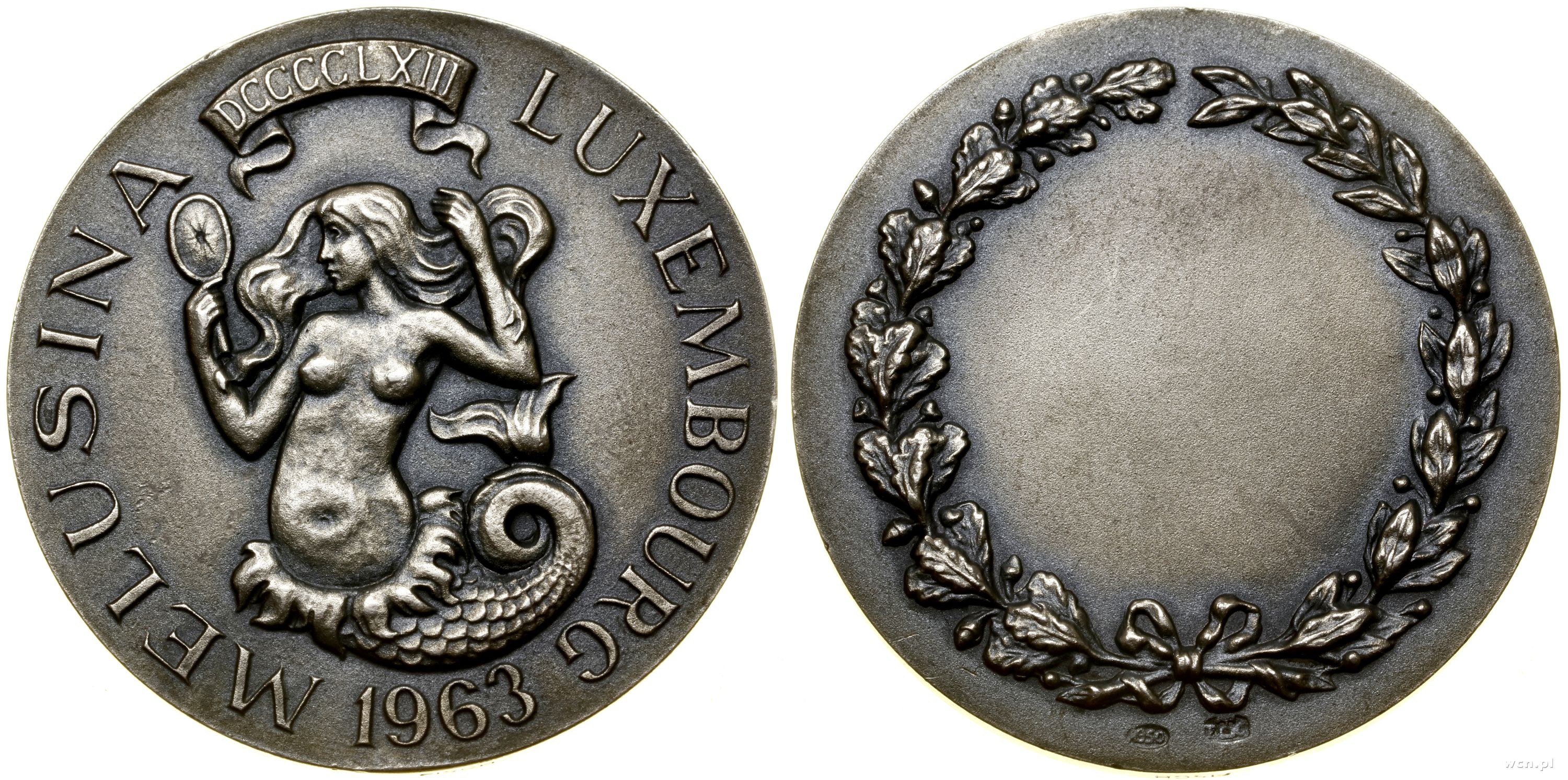 Aw: Meluzyna, wyżej szarfa, na której DCCCCLXIII, MELUSINA - LUXEMBOURG - 1963, Rw: Wieniec, na dole punce srebra, Obrzeże: Nabite FISCH