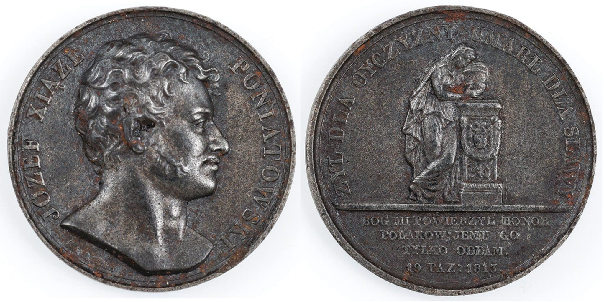 MEDAL NA PAMIĄTKĘ ŚMIERCI JÓZEFA PONIATOWSKIEGO, Huta Białogon, 1813
