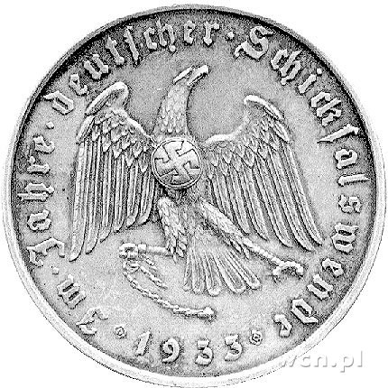 NIEMCY, medal pamiątkowy z okazji objęcia władzy w Niemczech przez Hitlera 1933 r., Aw: Popiersie Adolfa Hitlera w lewo i napis w otoku, Rw: Orzeł zrywający okowy, na piersi swastyka, w otoku napis: IM JAHRE DEUTSCHER SCHICKSALSWENDE 1933 (zmiana zrządzeń losu), srebro 36 mm
