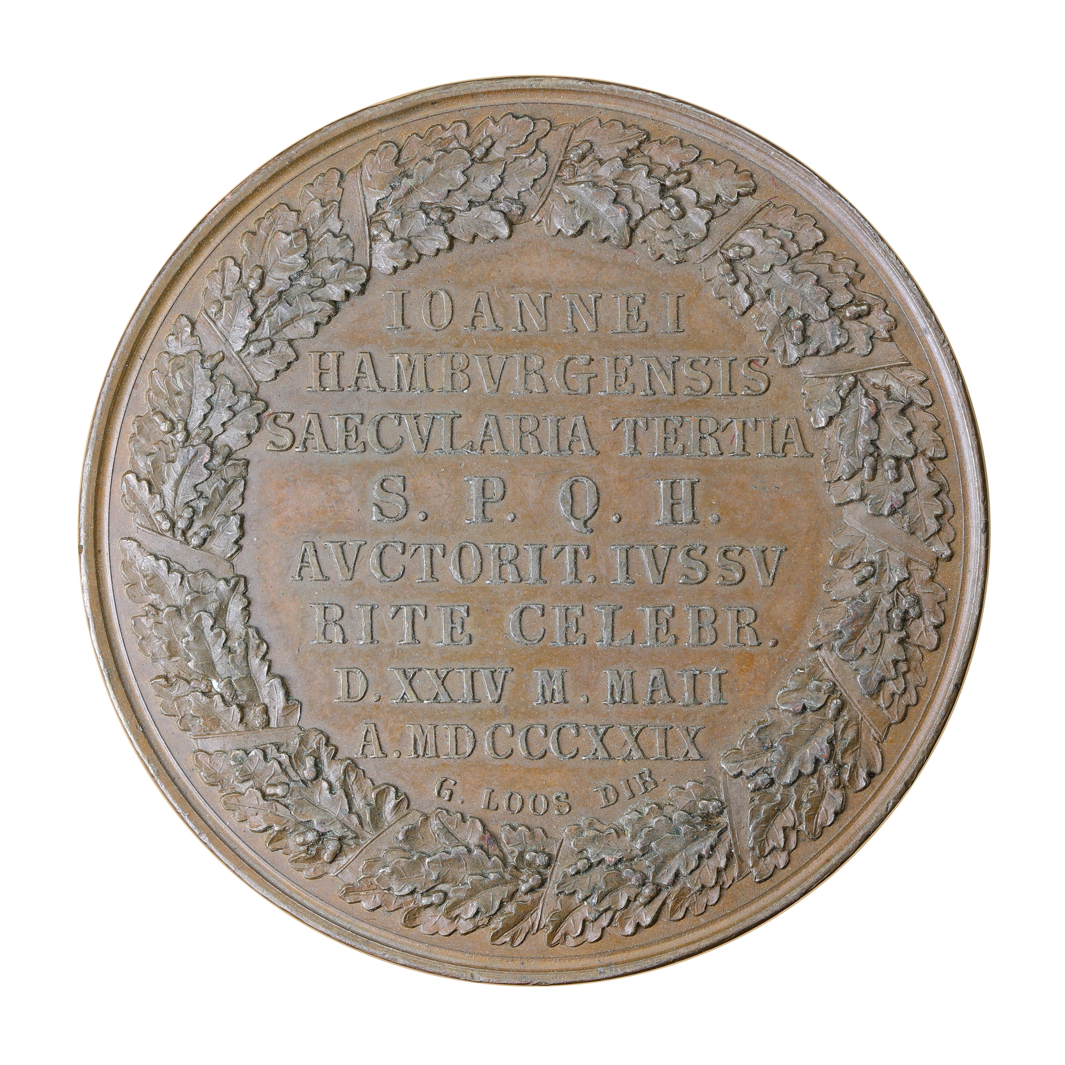 Medal z 1829 r., Hamburg, medal poświęcony Johannesowi Bugenhagenowi (powiernik, spowiednik i przyjaciel Marcina Lutra, wykładowca na uniwersytecie w Wittenbergu)