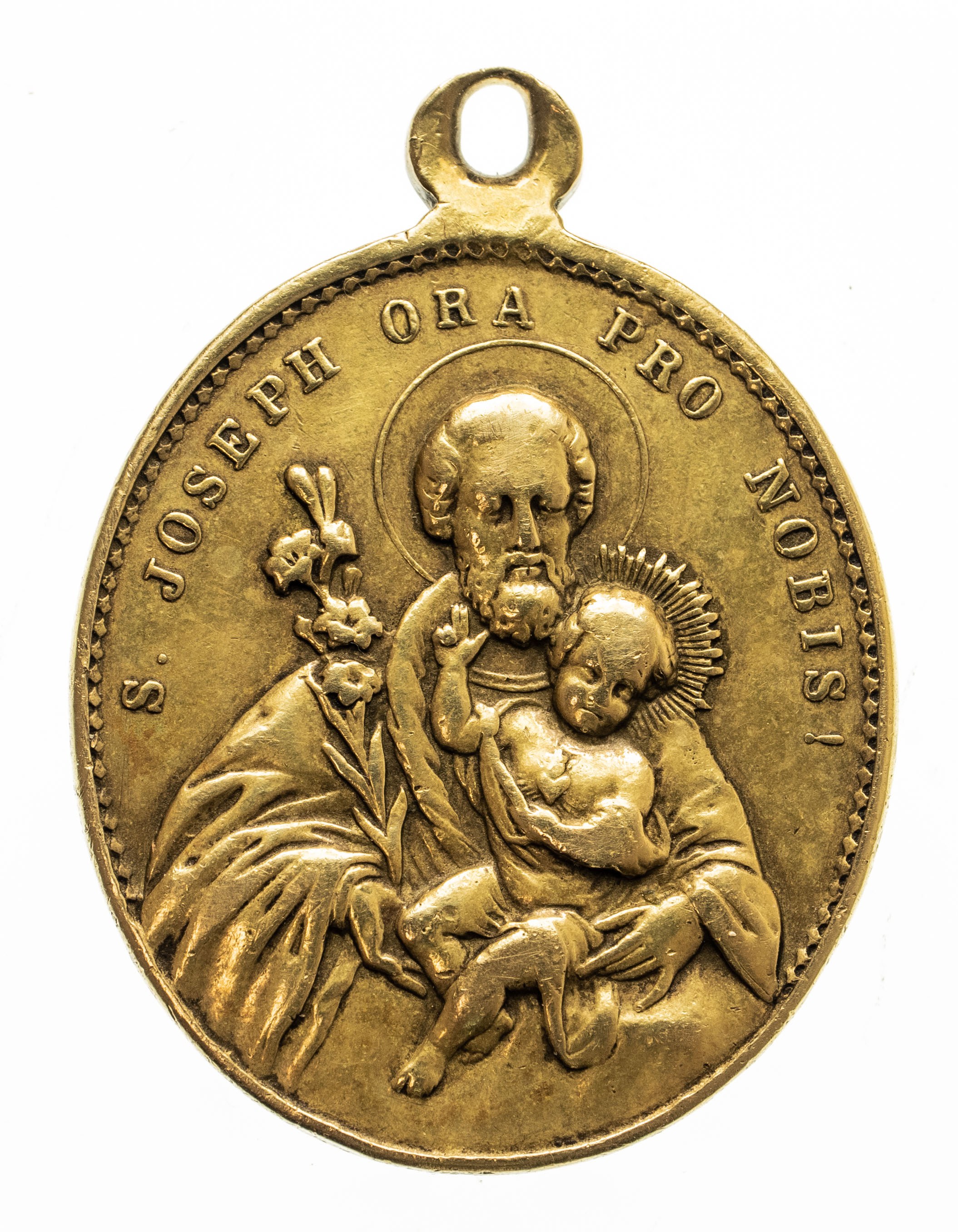 Medalik religijny Św. Józef oraz Maria, brąz.
