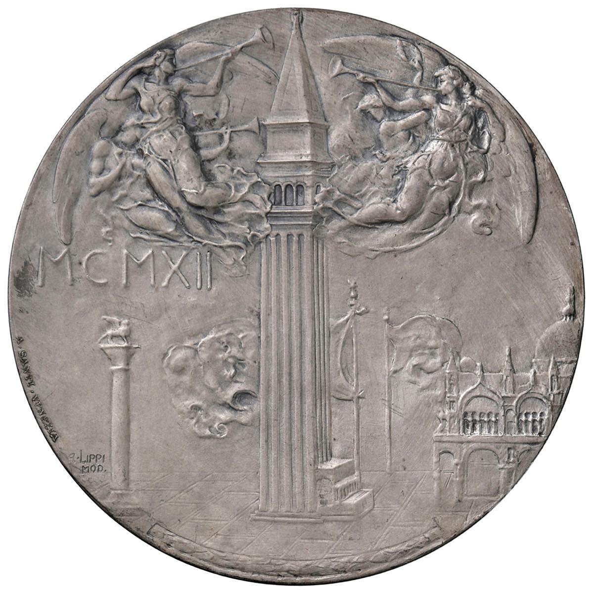 VENEZIA durante Vittorio Emanuele III (1900-1946) Medaglia 1912 Ricostruzione del Campanile - Opus: Lippi - AG (g 91,46 - Ø 60 mm) RRR