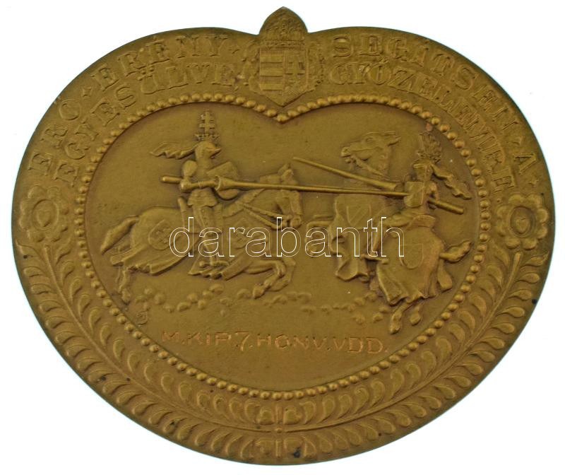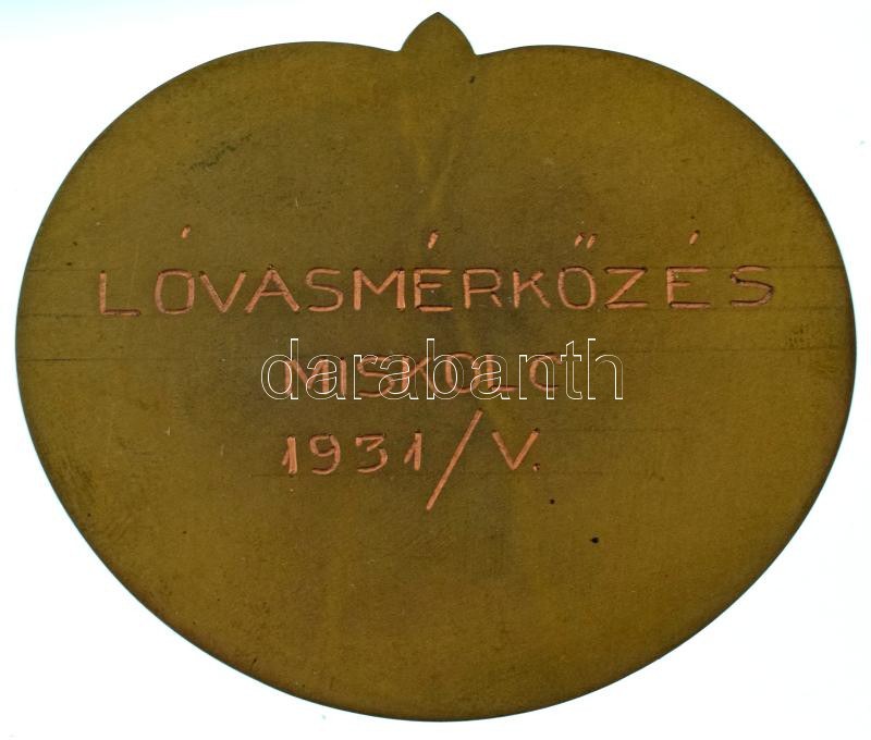 Mester Jenő (1882-1961) 1937. "Erő, erény egyesülve, segítsen a győzelemre" egyoldalas bronz emlékérem, előlapon "M. Kir. 7. Honv. VDD", hátlapon "Lóvasmérkőzés Miskolc 1931/V." (60x71mm) T:AU,XF TP 1864.