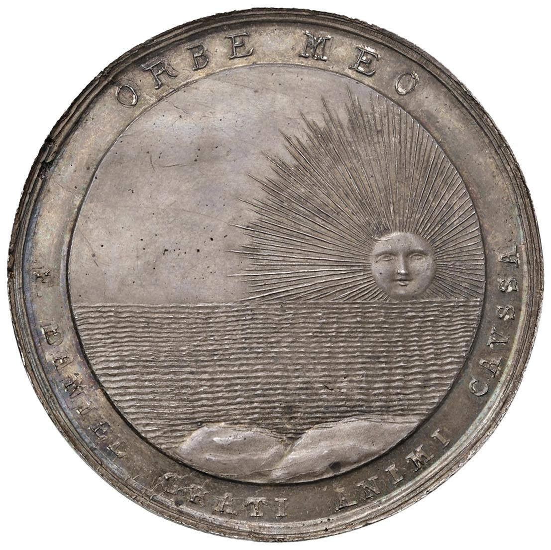 MEDAGLIE NAPOLEONICHE Giuseppe Napoleone Bonaparte (1806-1808) Medaglia omaggio di Francesco Daniele a Giuseppe Bonaparte, commemorativa della proclamazione del 1808 - Bramsen 722; Essling 1207; D'Auria 78; Siciliano 10; Turricchia 645 - RRRR - AG (g 47.11 - Ø 44.5 mm) Medaglia della più grande rarità e di conservazione eccezionale, dai rilievi perfettamente integri, magnifica patina da monetiere e di grandissima freschezza del metallo.