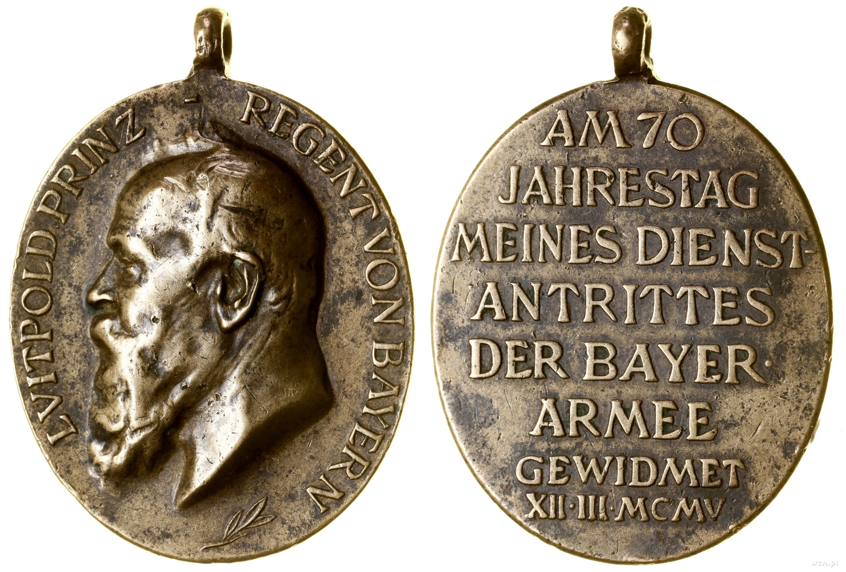 Głowa w lewo, LVITPOLD PRINZ - REGENT VON BAYERN, na stronie odwrotnej AM 70 / JAHRESTAG / MEINES DIENST / ANTRITTES / DER BAYER• / ARMEE / GEWIDMET / XII•III•MCMV, odznaczenie jednoczęściowe, z uszkiem, ale bez wstążki