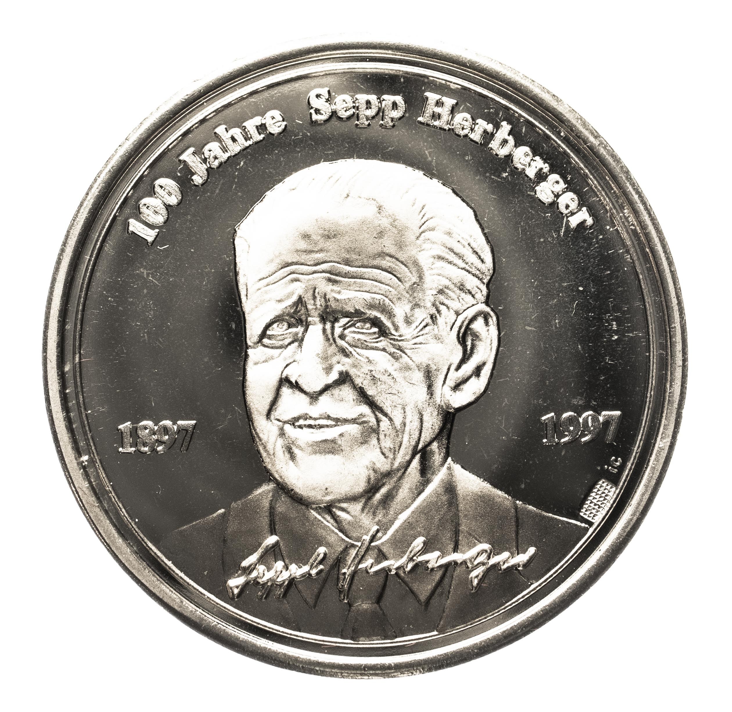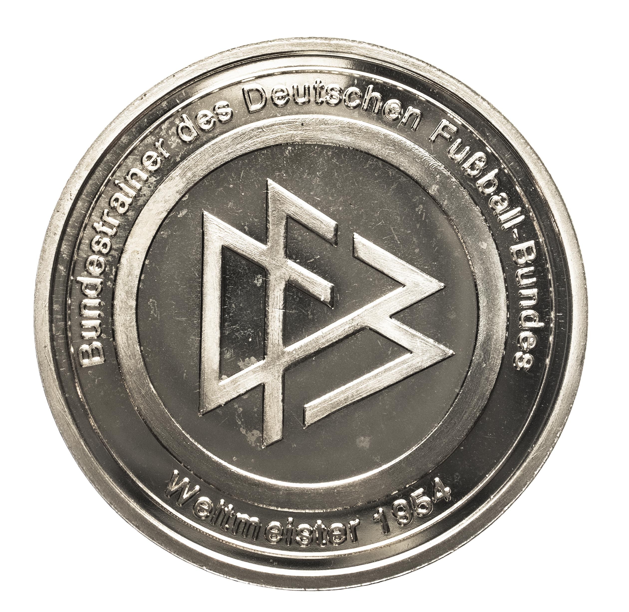 Sepp Herberger uważany jest za jednego z najwybitniejszych trenerów w historii niemieckiej piłki nożnej. W 1954 roku zdobył z reprezentacją Niemiec Mistrzostwo Świata, wygrywając w finale z Wegrami 3:2. Mecz ten jest określany jako "Cud w Bernie" gdyż w 8mej minucie meczu Węgrzy (faworyci) prowadzili 2:0. Dodatkowo mecz ten odbywał się w deszczu (skąd my to znamy ?). Medal bity stemplem lustrzanym,
