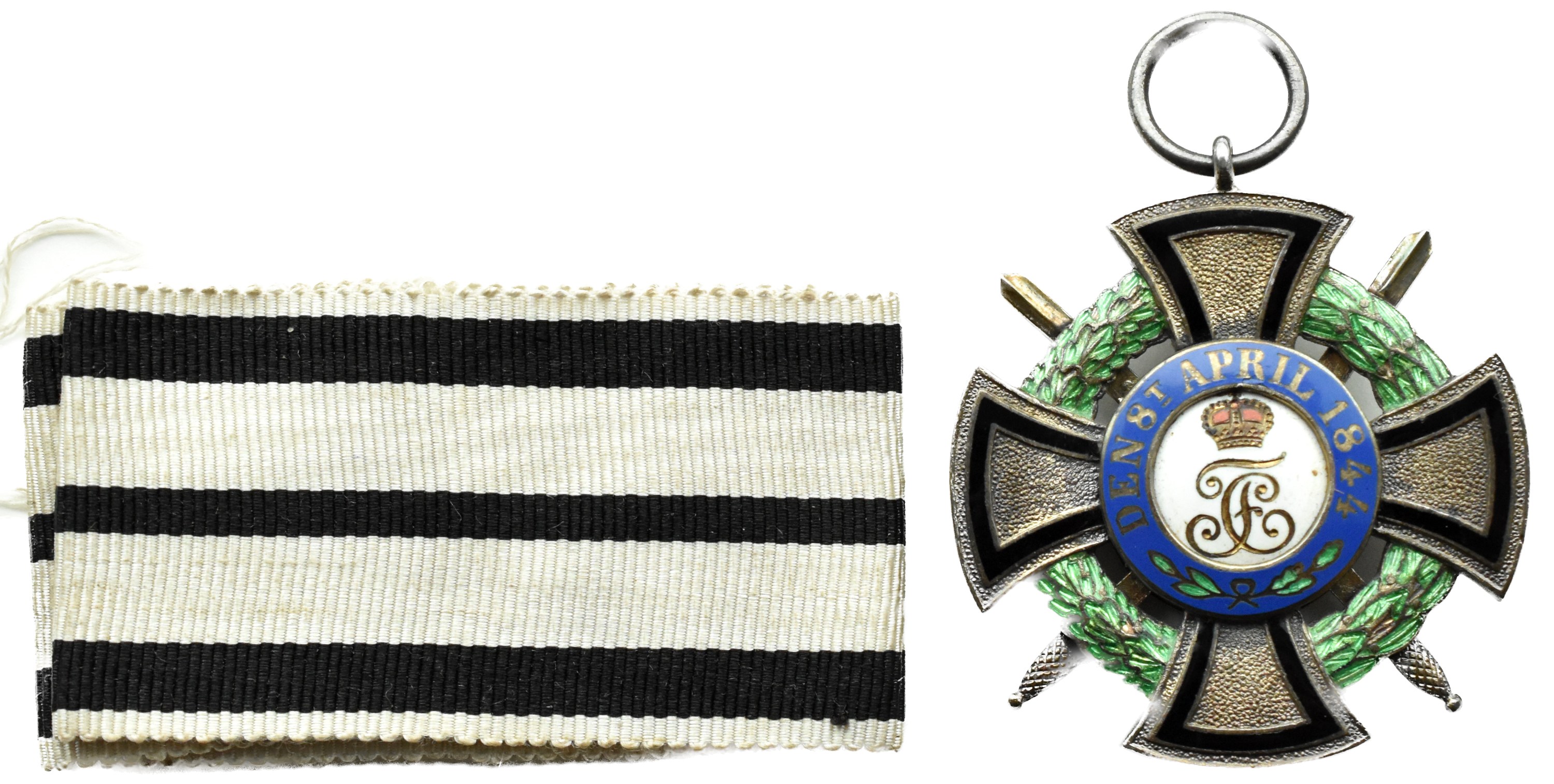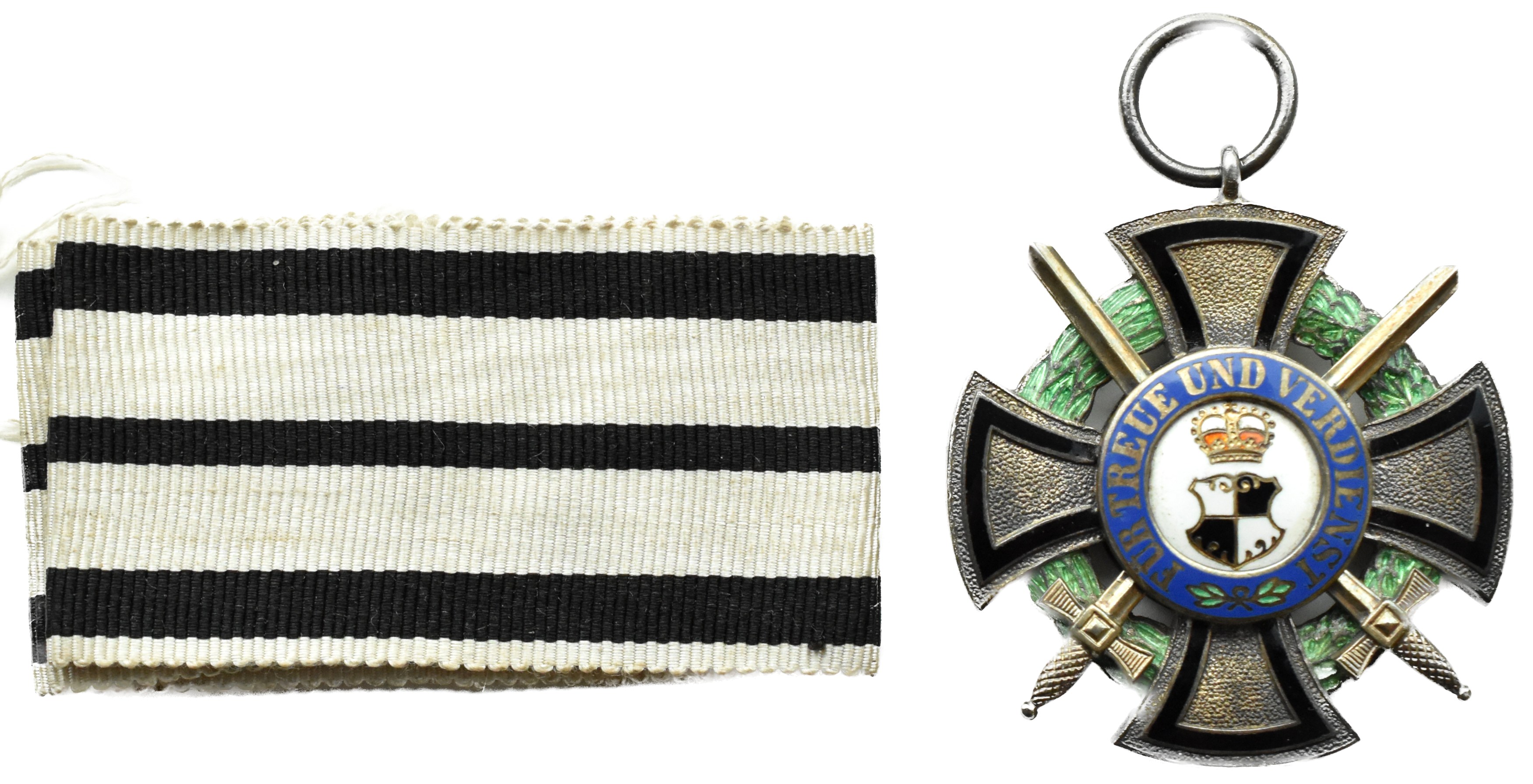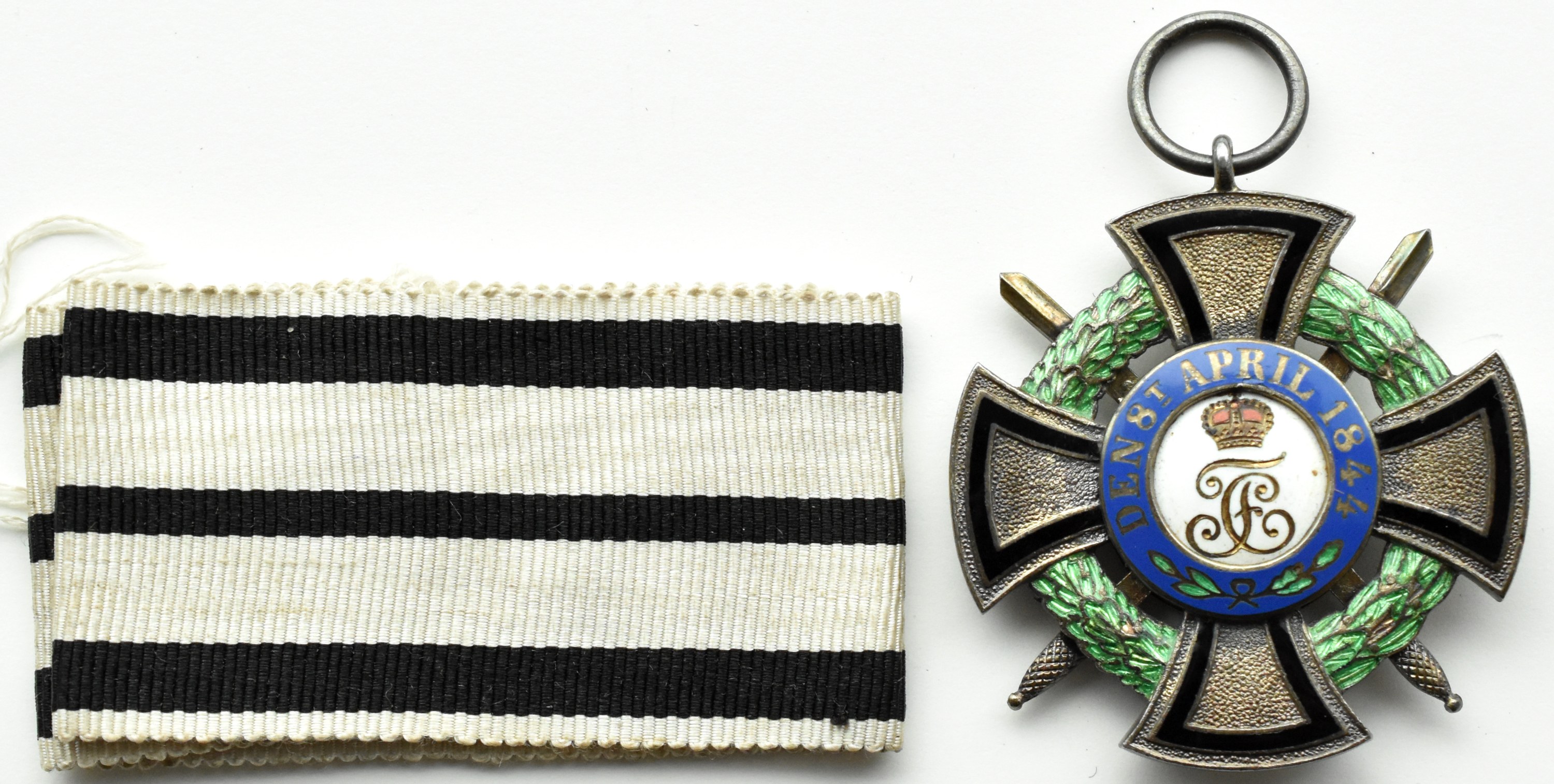 Zakon Domu Książęcego Hohenzollernów został założony wspólnie przez książąt Konstantyna z Hohenzollernów w Hechingen i Karola Antona Hohenzollernów z Sigmarinen. Początkowo order składał się z czterech klas: Krzyża Honorowego I i II klasy oraz złotego i srebrnego medalu za zasługi. W 1844 roku dodano Krzyż Honorowy III klasy, to właśnie ten sprzedawany na aukcji.