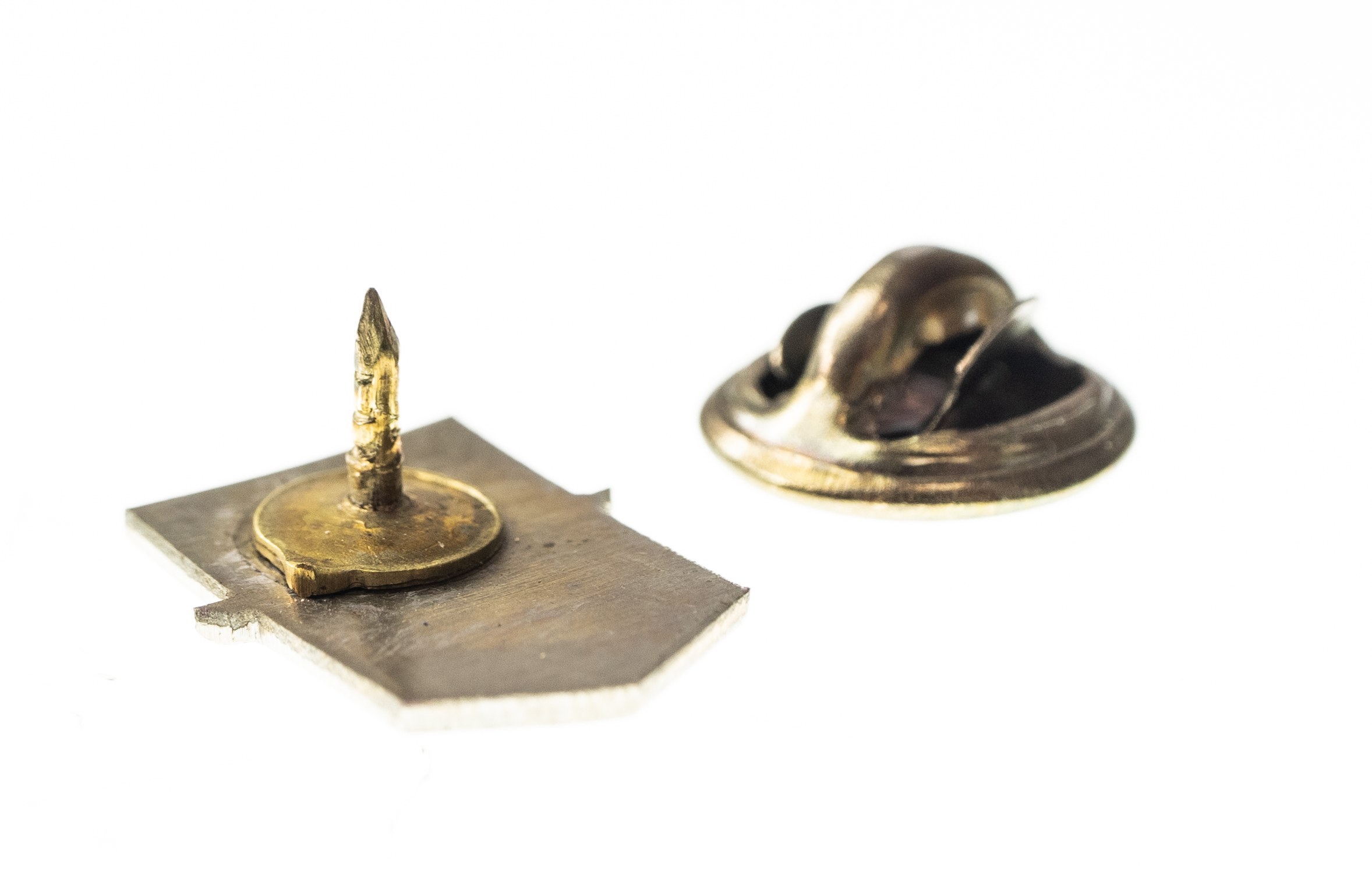 Odznaka spadochronowa na szpilce, wymiary około 1 x 1,5 cm.