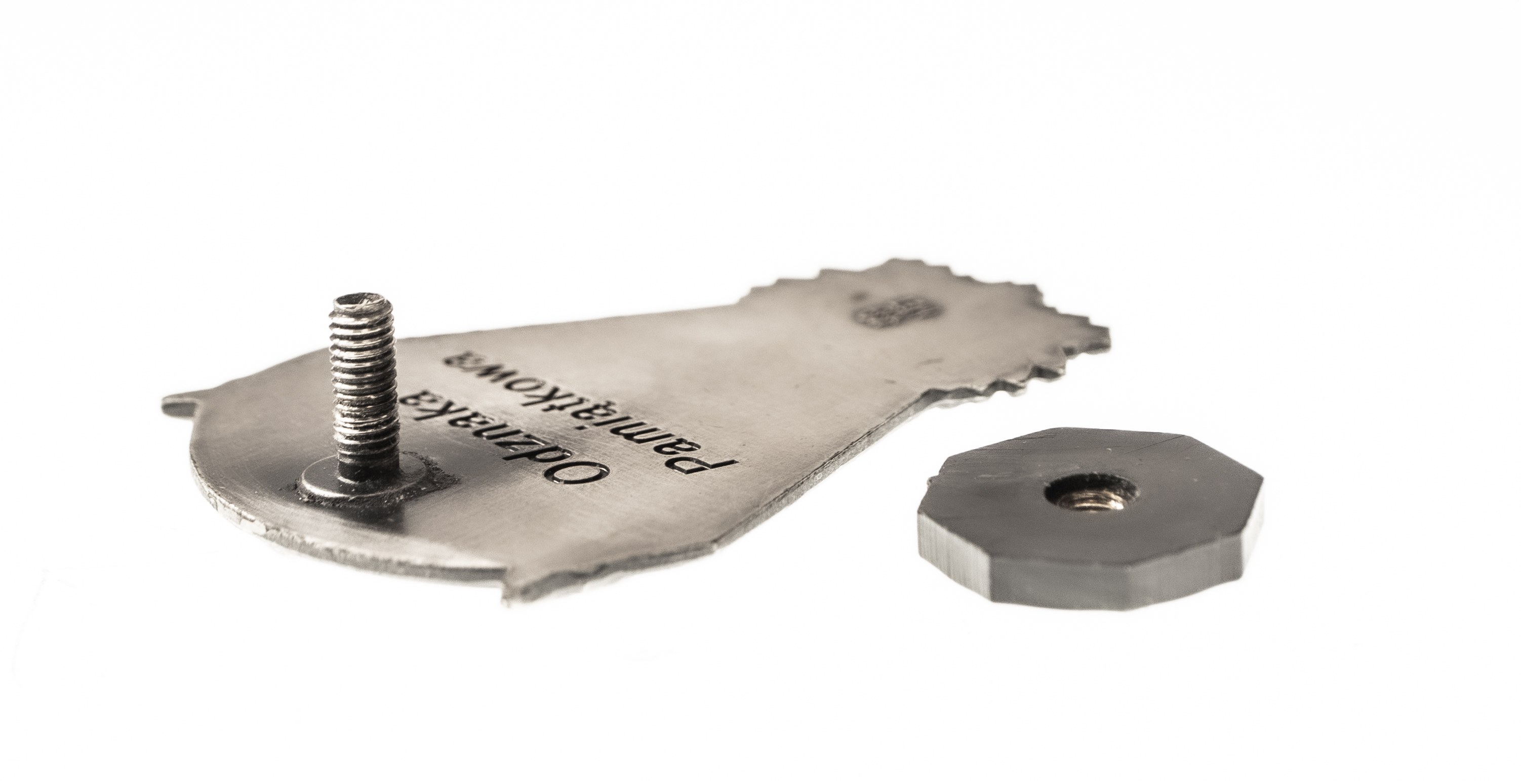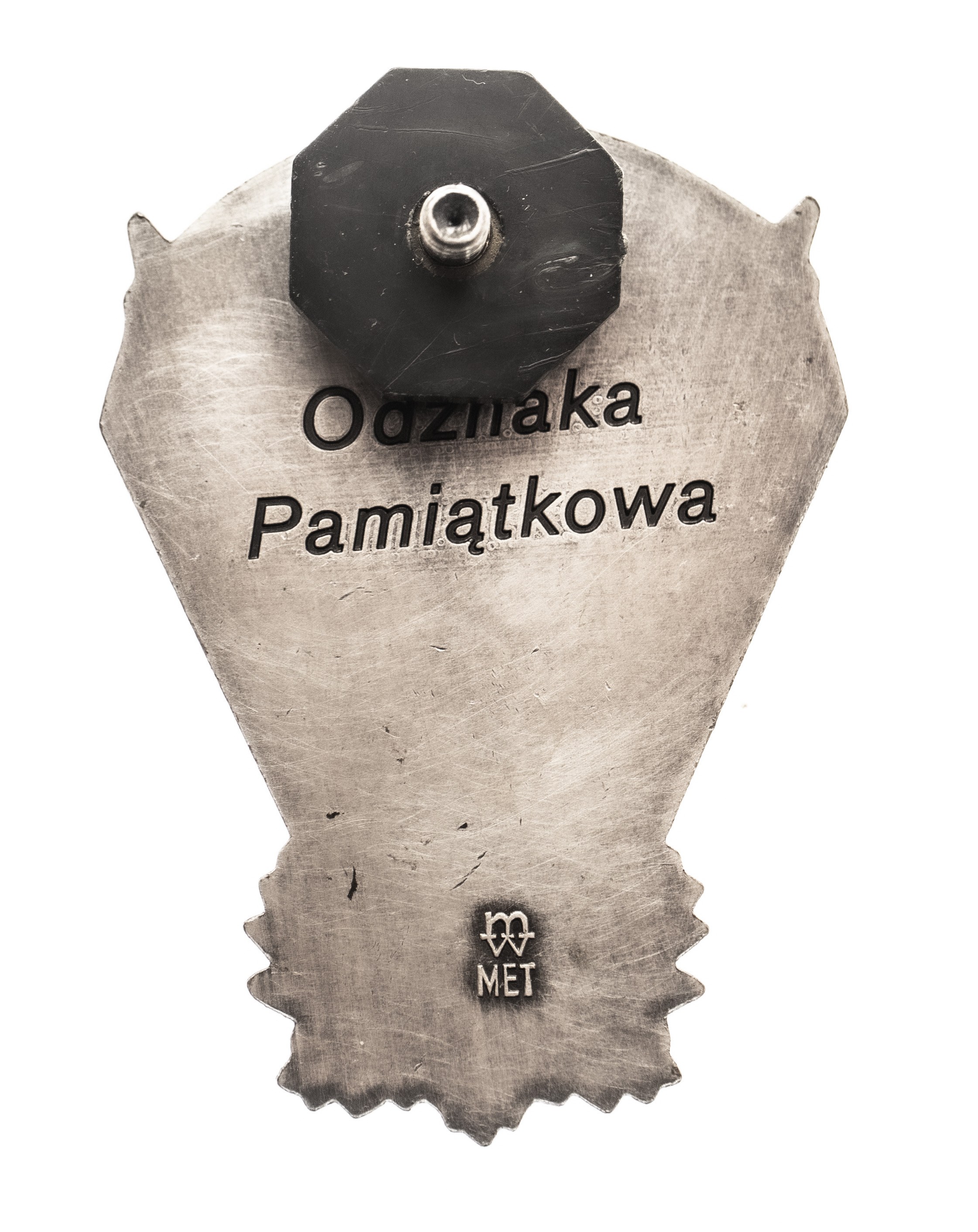 Odznaka na słupku, wymiary około 4 x 3 cm. Odznaka z wygrawerowanym napisem Odznaka Pamiątkowa, sygnowana znakiem Mennicy Warszawskiej.