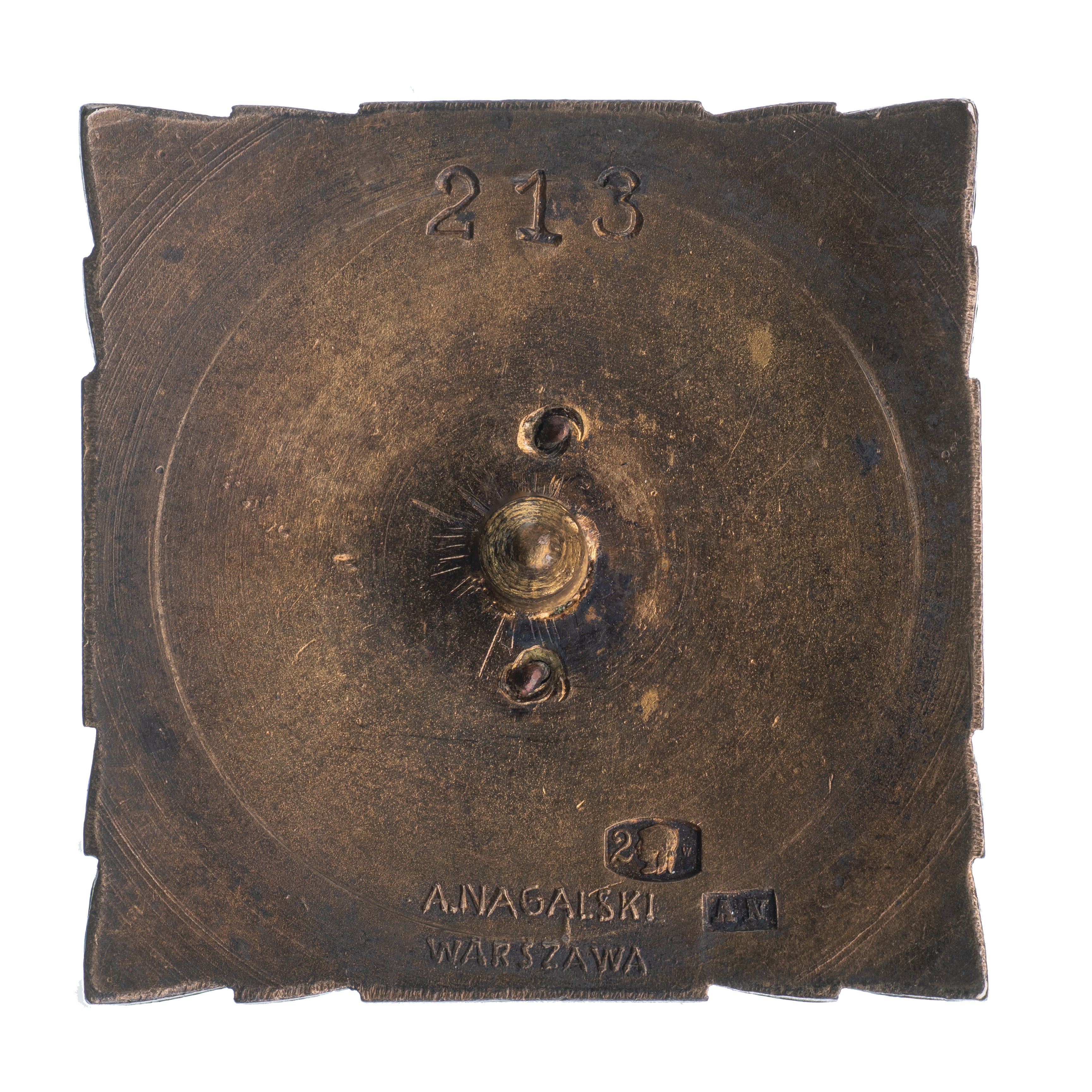państwowa cecha srebra, numerowana 213, wymiary ~30 x 30 mm, dwuczęściowa,
