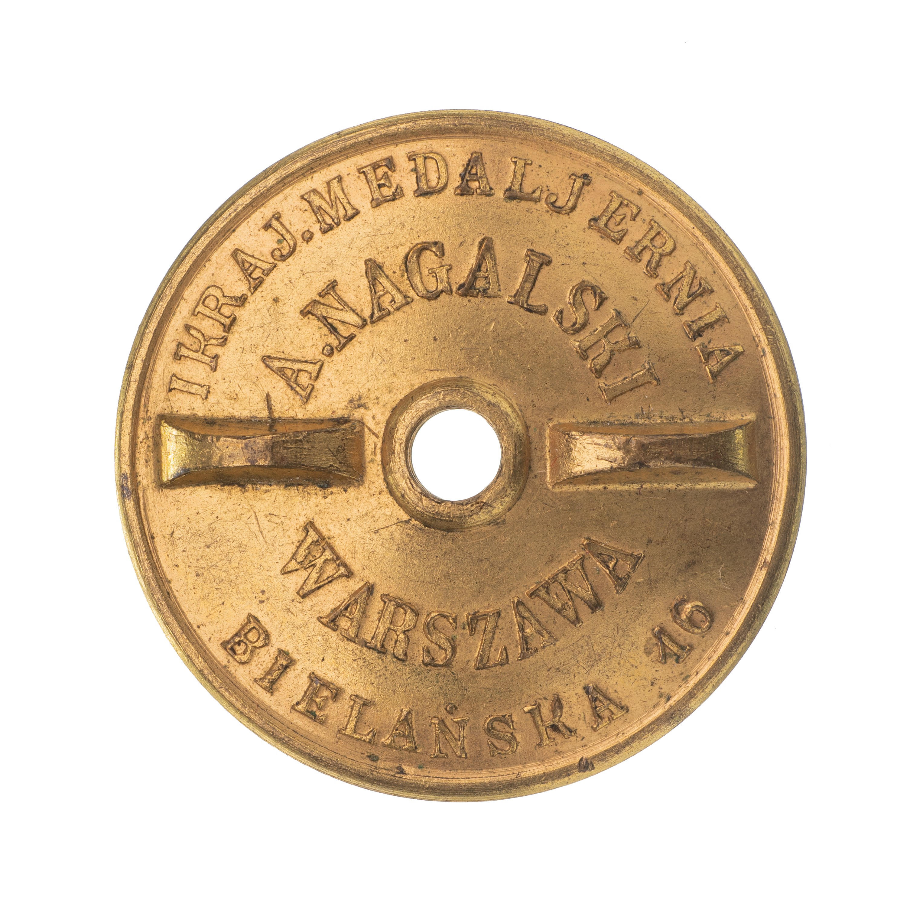 nakrętka sygnowana I KRAJ.FABR.MEDALI A.NAGALSKI WARSZAWA BIELAŚKA 16, średnica 25 mm