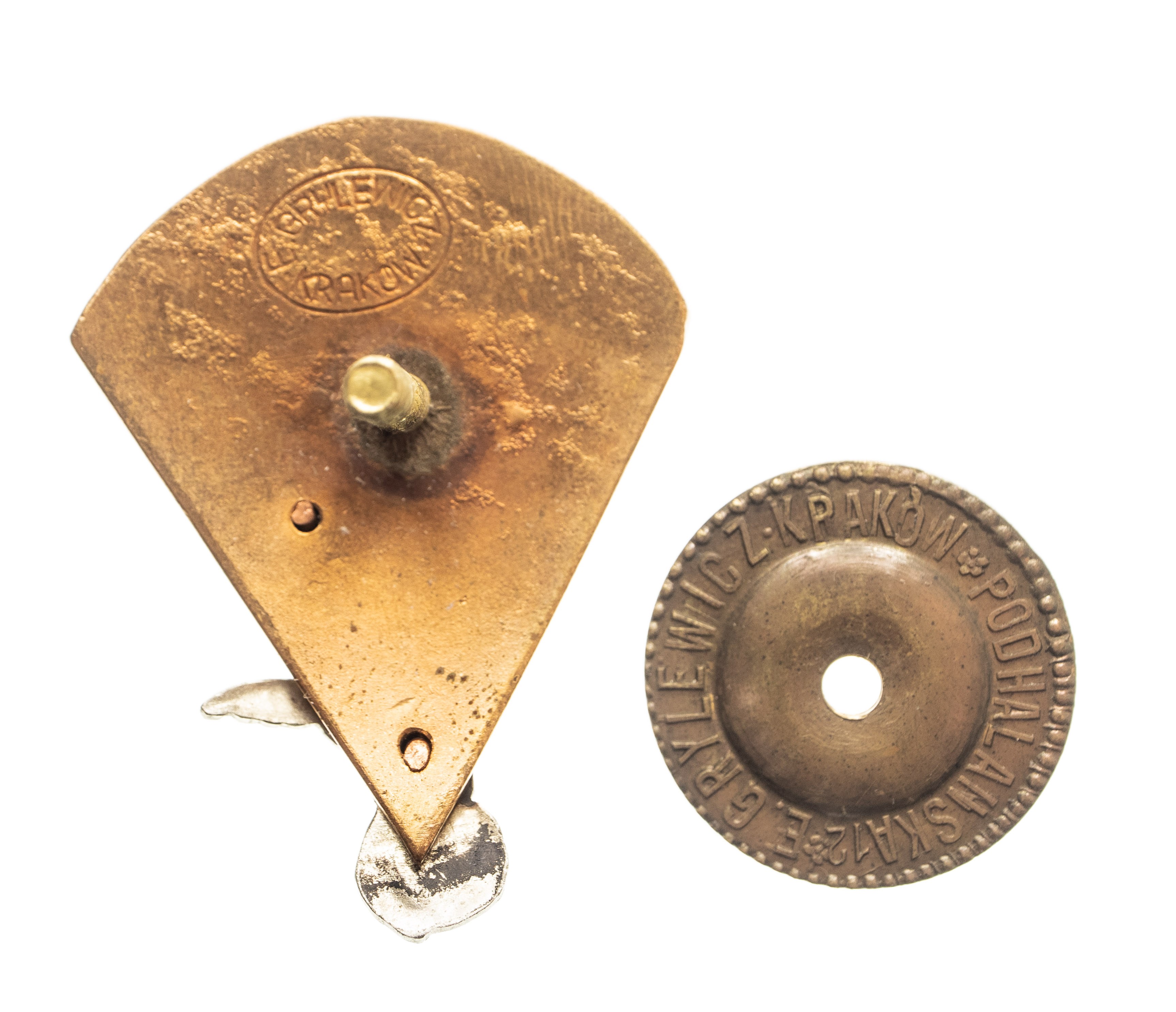Odznaka na słupku, wymiary około 4 x 3,5 cm. Odznaka sygnowana: E. GRYLEWICZ, KRAKÓW. Nakrętka odznaki sygnowana E. GRYLEWICZ, KRAKÓW UL. PODHALAŃSKA.12.