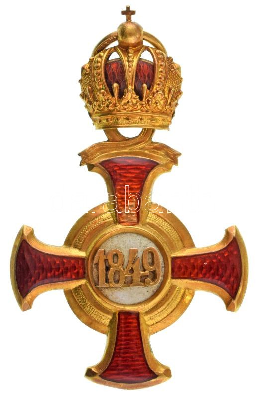 Osztrák-Magyar Monarchia 1869-1918. "Koronás Arany Érdemkereszt" zománcozott Au kitüntetés, a karikán zerge fémjel és ...