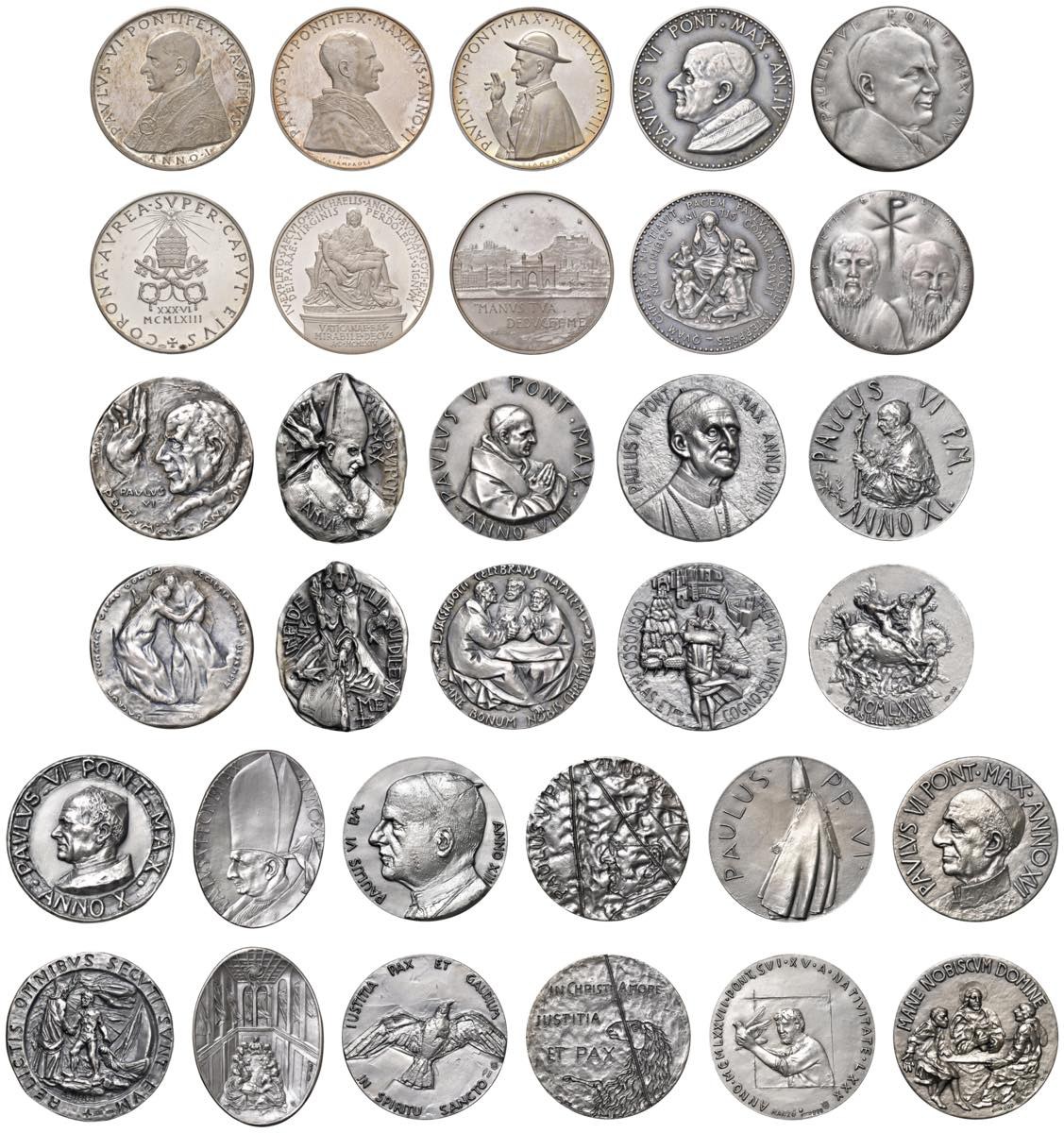 Papal medals - Paolo VI (1963-1978) Giro Completo delle 16 medaglie an...