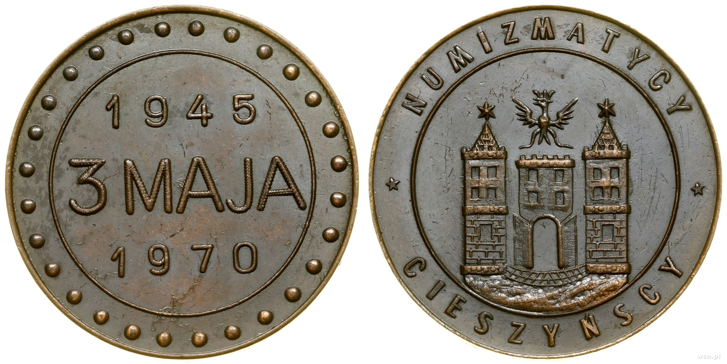 Aw: 1945 / 3 MAJA / 1970, Rw: Herb Cieszyna, NUMIZMATYCY CIESZYŃSCY