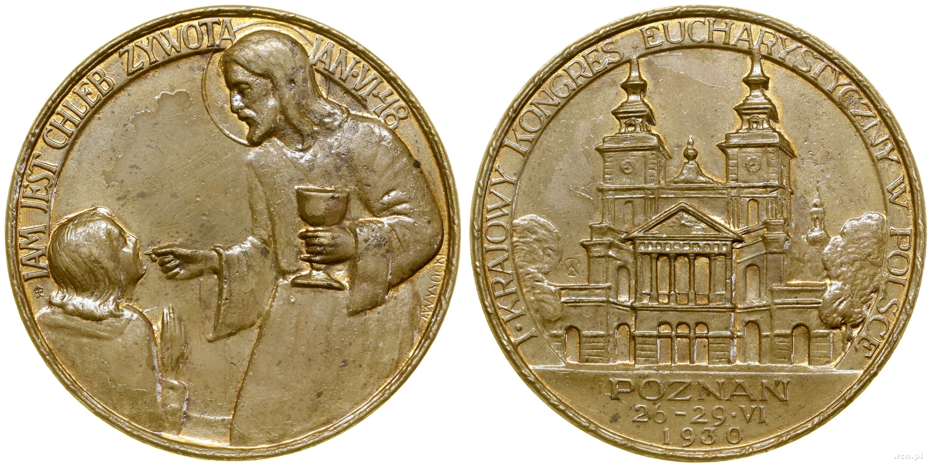 Fasada Katedry w Poznaniu, I • KRAJOWY KONGRES EUCHARYSTYCZNY W POLSCE, w odcinku POZNAŃ / 26 - 29 •VI / 1930, Rw: Chrystus dający komunię dziecku, IAM JEST CHLEB ŻYWOTA - JAN • VI • 48, projektował Jan Wysocki