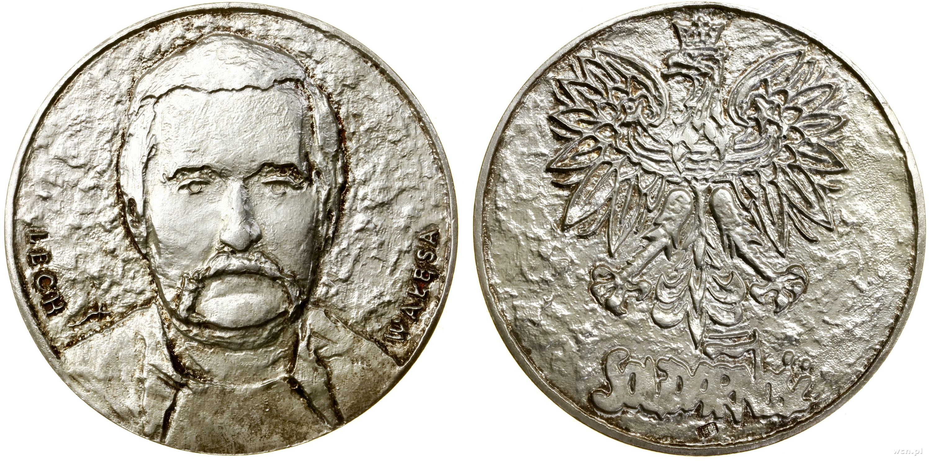 Aw: Popiersie na wprost, LECH - WAŁĘSA, Rw: Orzeł, niżej SOLIDARNOŚĆ, Obrzeże: Punca 925 oraz imiennik P4
