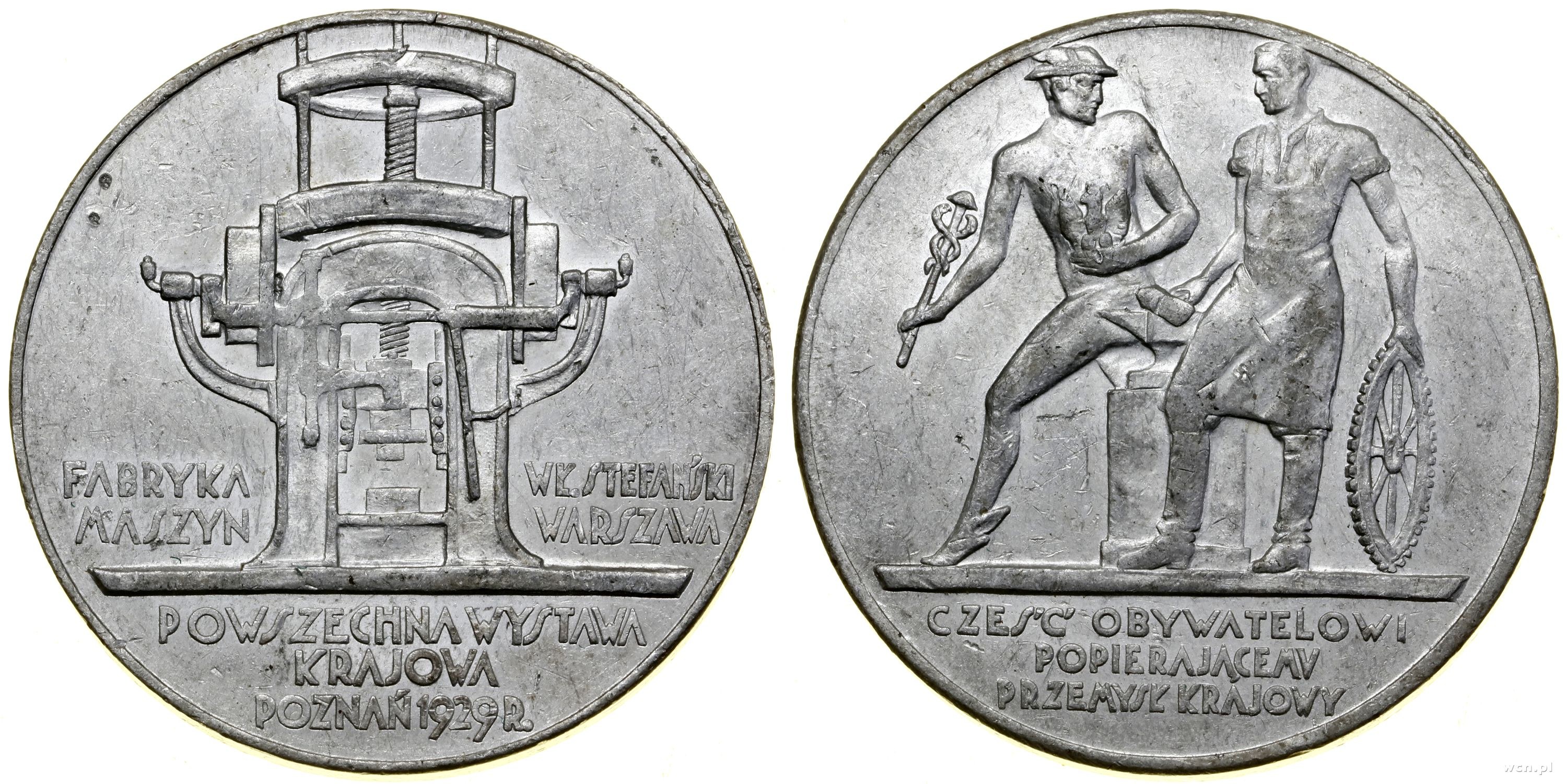 Aw: Prasa mennicza, po bokach FABRYKA / MASZYN - WŁ. STEFAŃSKI / WARSZAWA, w odzinku POWSZECHNA WYSTAWA / KRAJOWA / POZNAŃ 1929 R., Rw: Postacie Merkurego i robotnika, na dole w odcinku napis CZEŚĆ OBYWATELOWI / POPIERAJĄCEMU / PRZEMYSŁ KRAJOWY