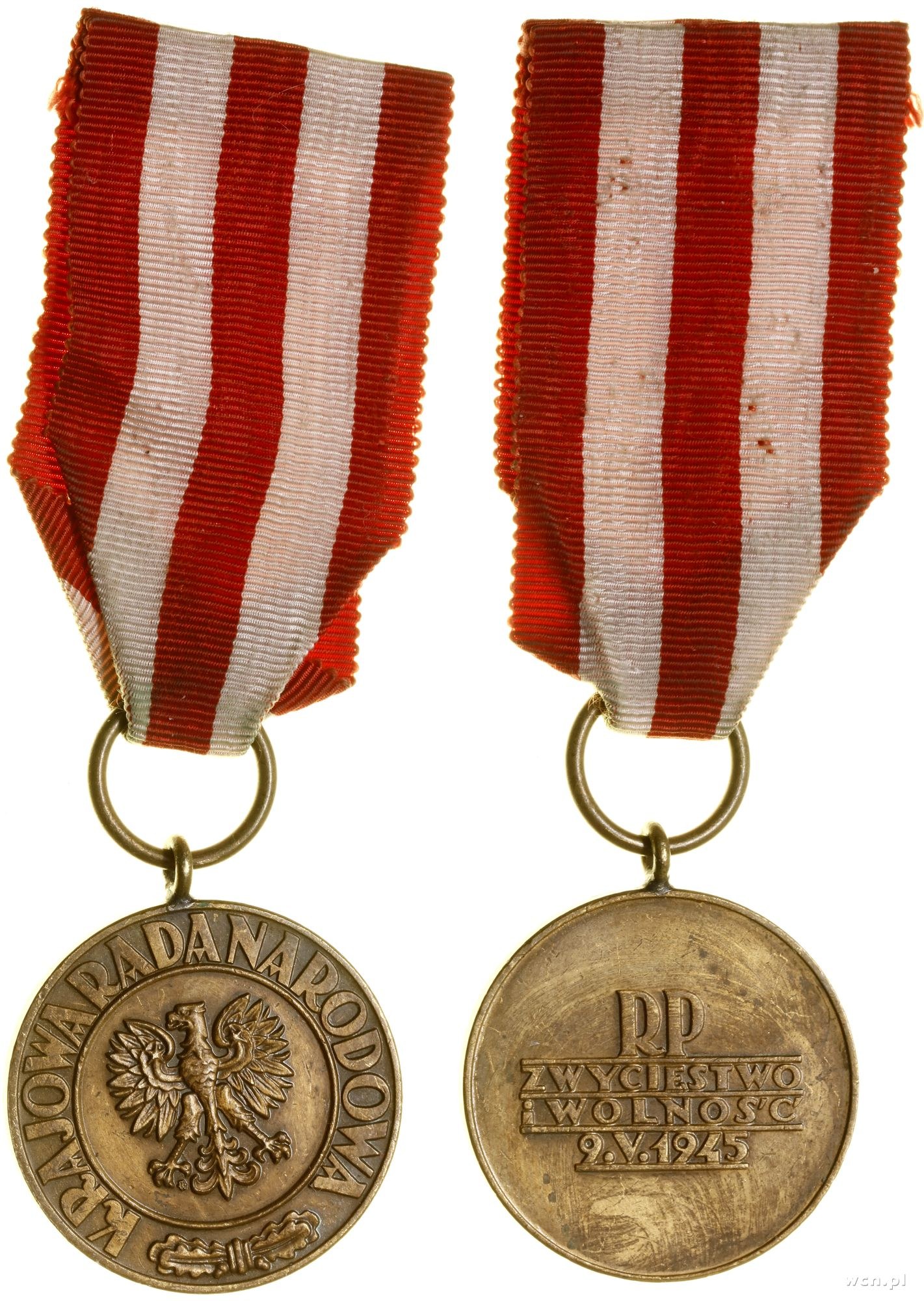 Orzeł, KRAJOWA RADA NARODOWA, na stronie odwrotnej RP / ZWYCIĘSTWO / i WOLNOŚĆ / 9.V.1945, odznaczenie jednoczęściowe, mocowane na wstążkę
