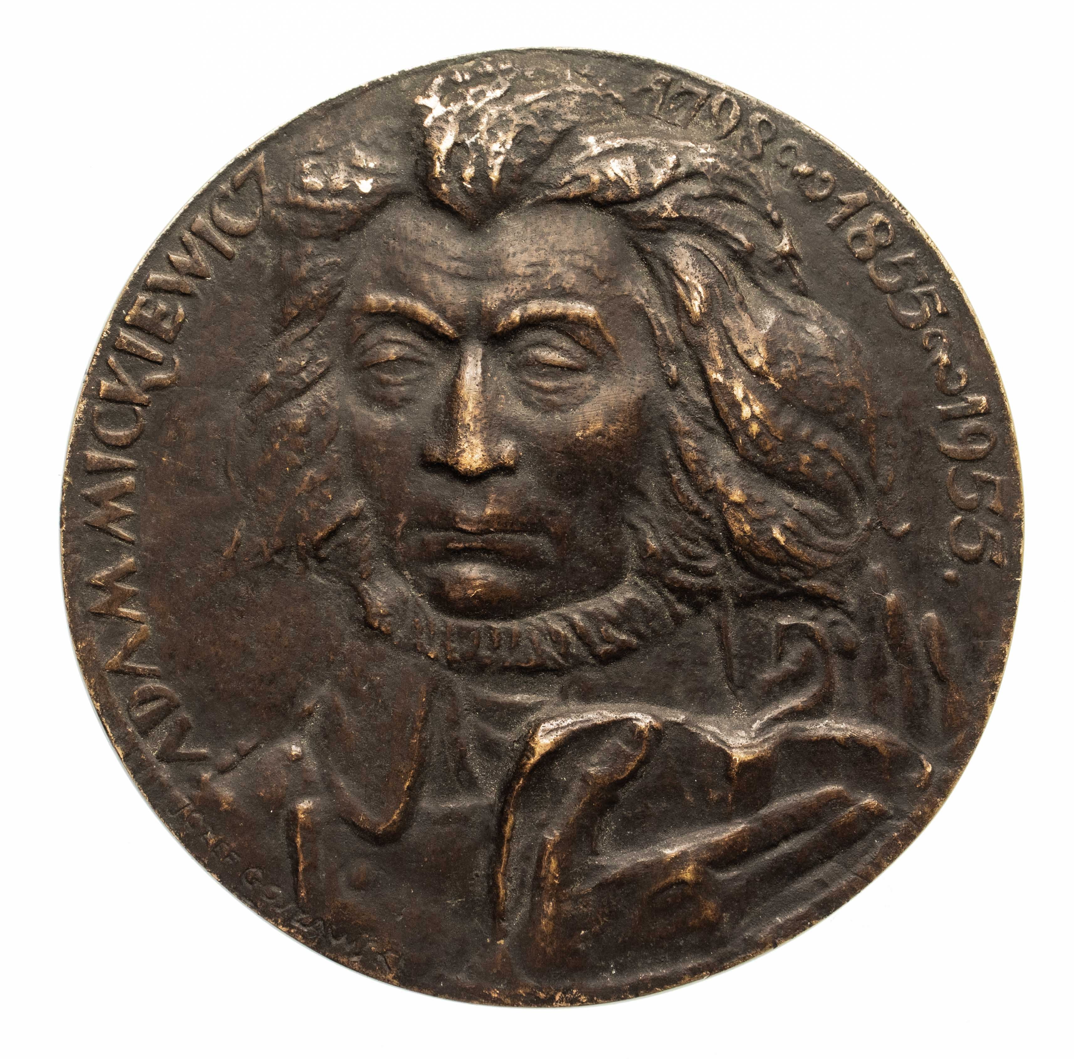 Medal autorstwa Józefa Gosławskiego z 1956 r. - Adamowi Mickiewiczowi w setną rocznicę zgonu.