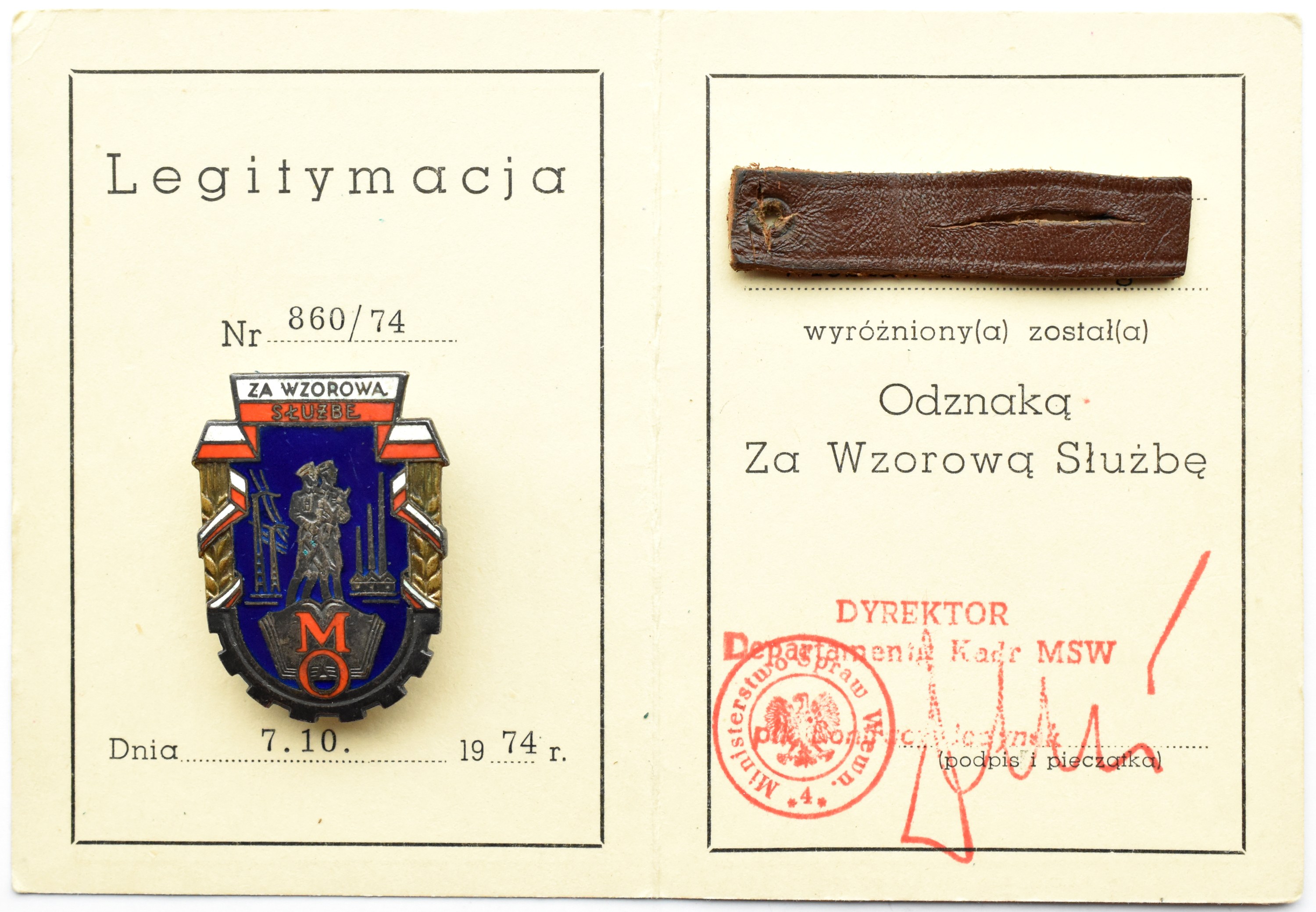 Polska, PRL, odznaka Za Wzorową Służbę w MO z legitymacją z 1974