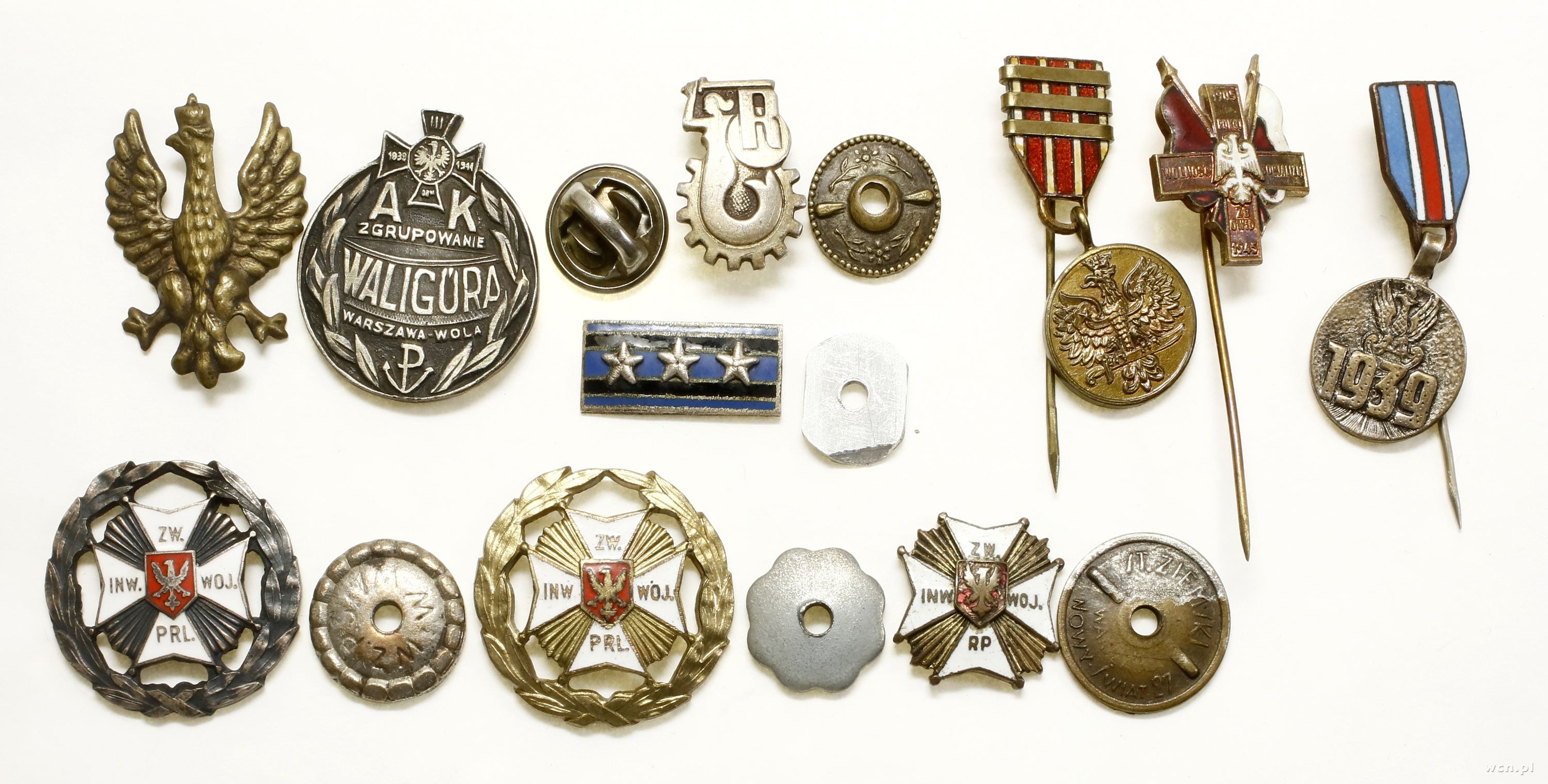 w skład zestawu wchodzą m.in. odznaki Związku Inwalidów Wojennych RP i PRL, ZBOWiDu, miniatura Medalu Za Udział w Wojnie Obronnej 1939, miniatura Medalu Wojska z trzema okuciami czy Odznaka za Rany i Kontuzje
