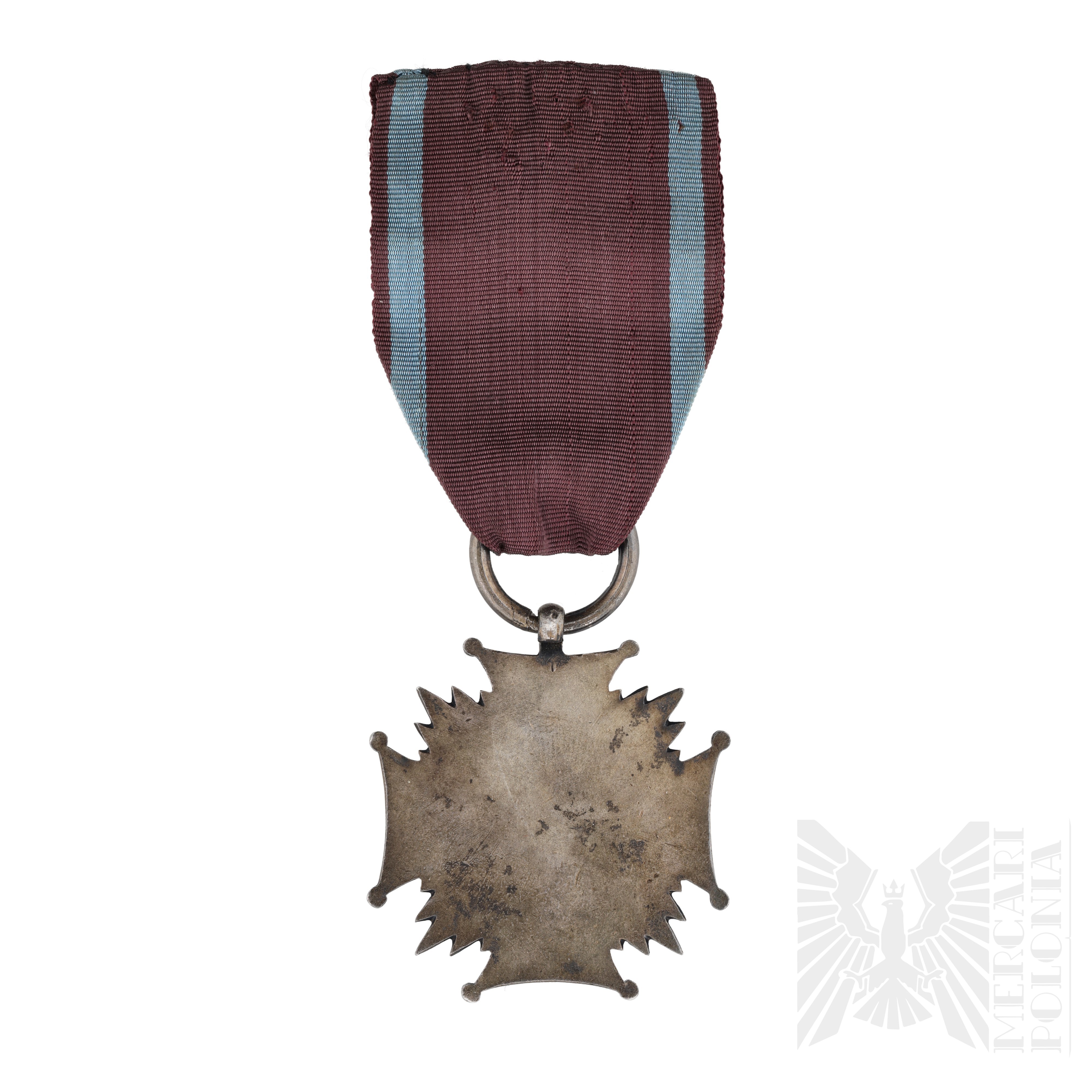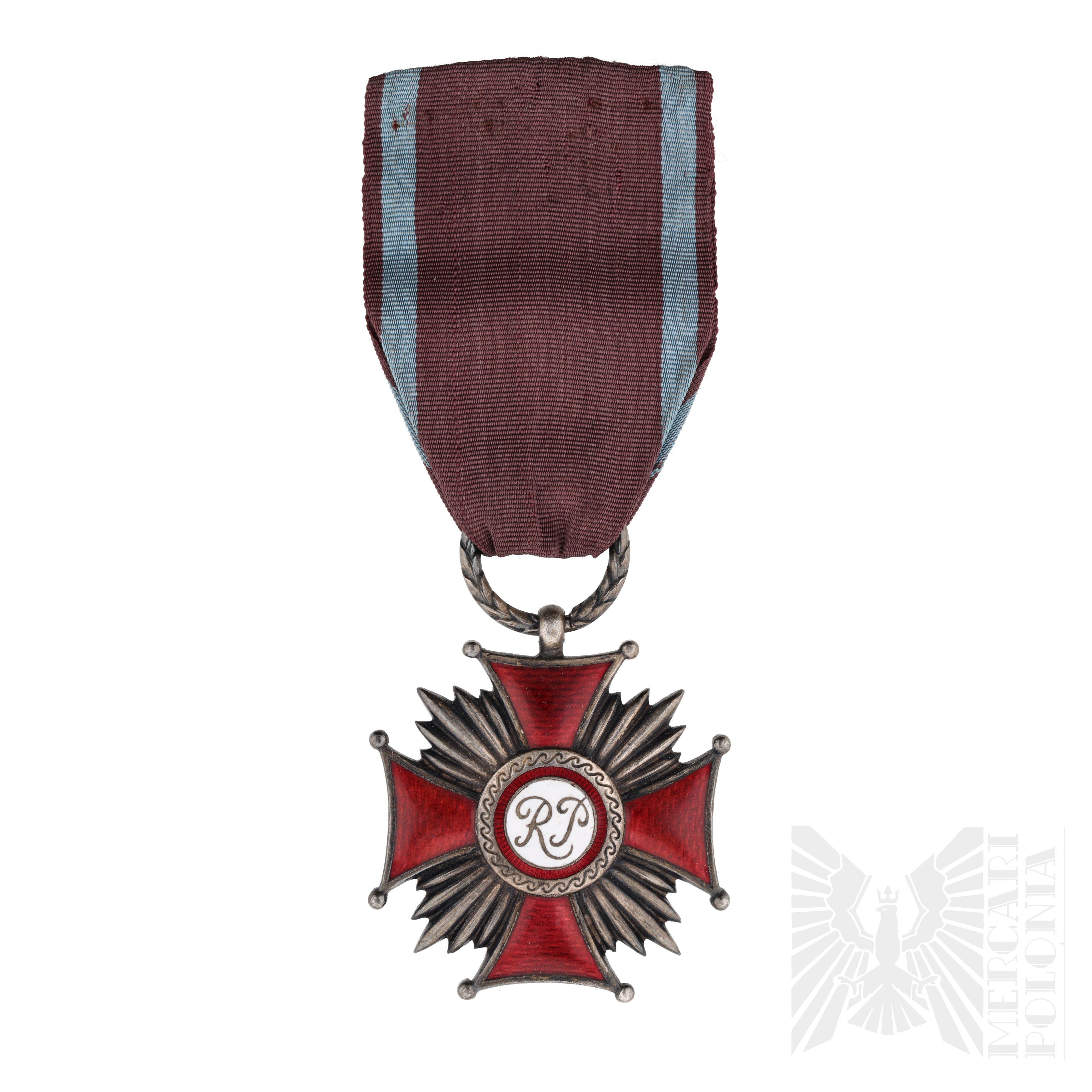 Odznaczenie w kształcie krzyża z ramionami pokrytymi czerwoną emalią, promieniami słonecznymi pomiędzy ramionami. W środku inicjały medalion "RP".