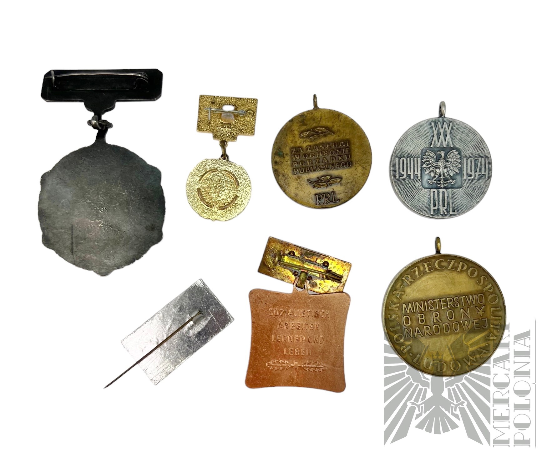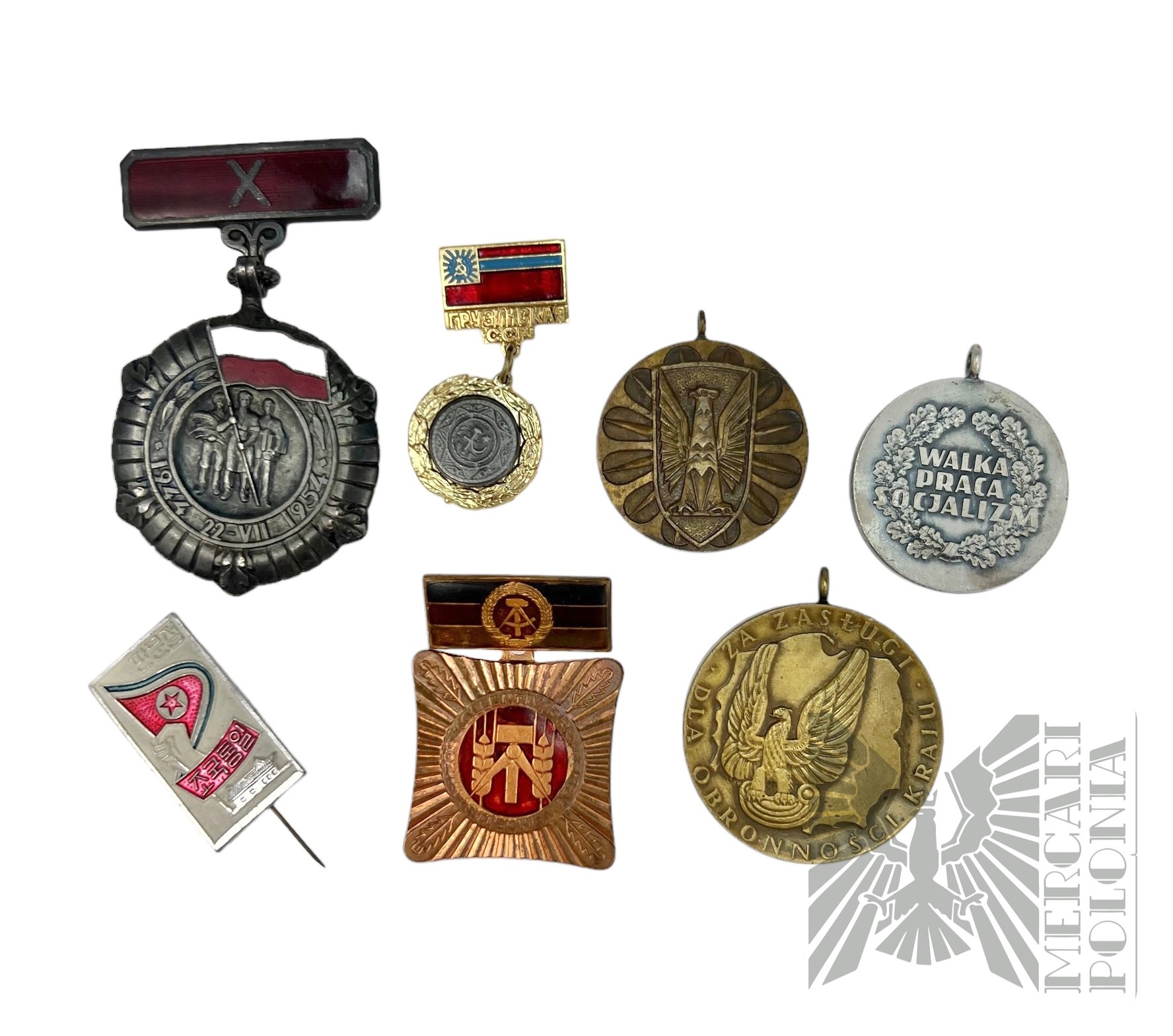 PRL Zestaw Odznaczeń - Przypinka z Korei Północnej, Przypinka Gruzińska ZSSR,  Medal DDR, XXX LAT PRL, Brązowy medal w służbie narodu,  Brązowy medal zasłużony dla obronności kraju PRL