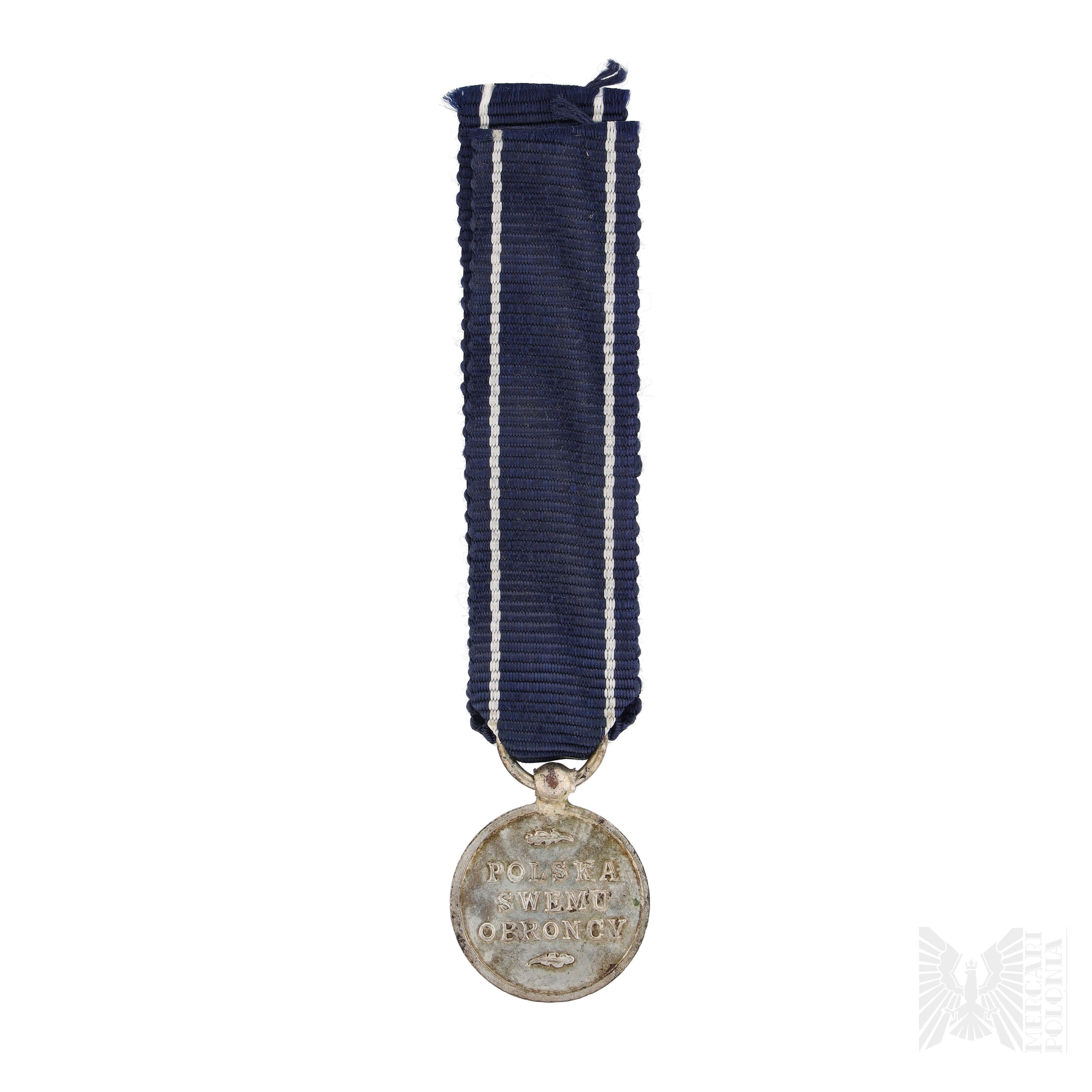 Na awersie przedstawiono rękę trzymającą bułat, otoczoną wieńcem z liści wawrzynu; na rewersie, pomiędzy dwoma liśćmi dębu, widnieje napis: POLSKA / SWEMU / OBROŃCY.