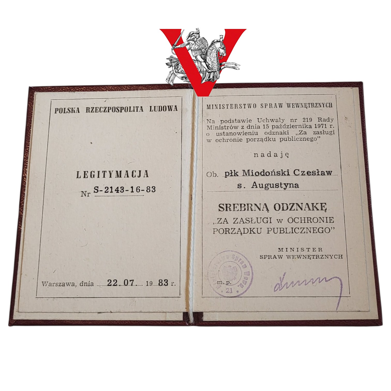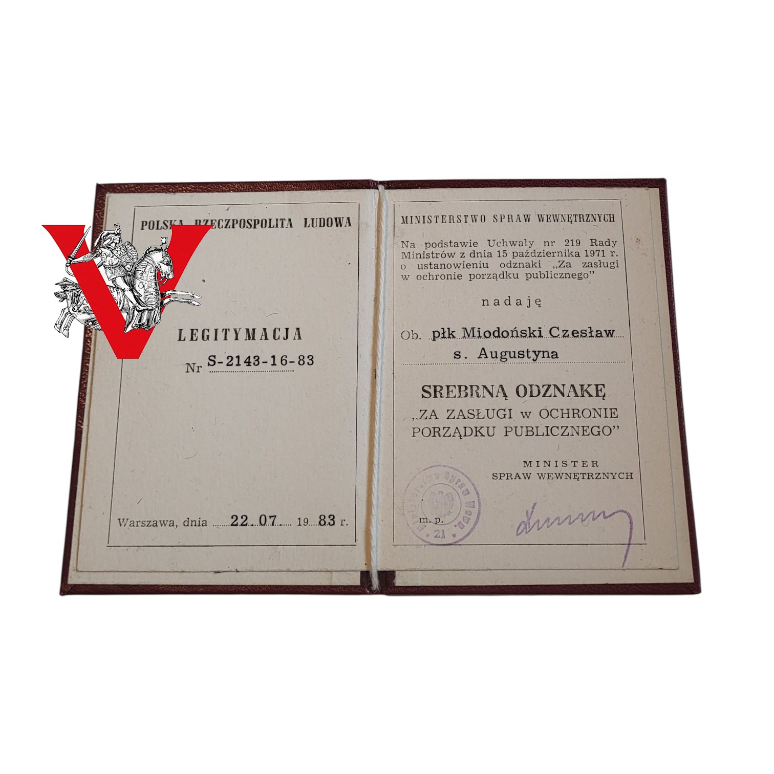 Pułkownik pilot dypl Czesław Miodoński, 62 Plot, Za Zasługi w Ochronie Porządku Publicznego, legitymacja
