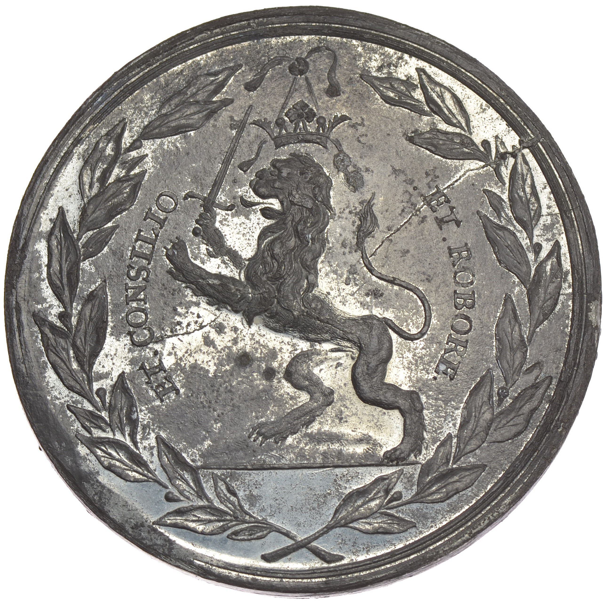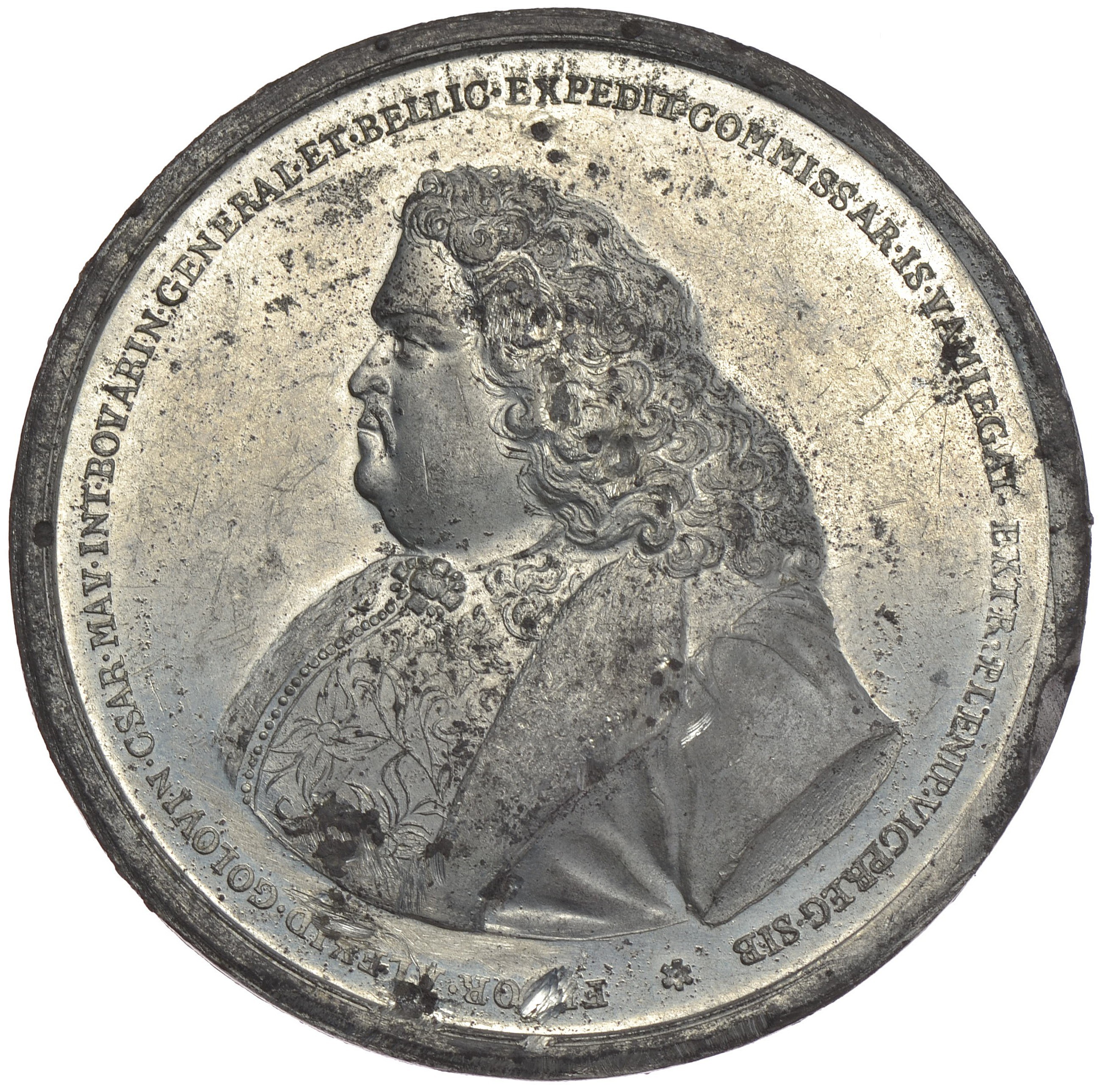Odbitka (późniejsza) w cynie rzadkiego medalu wybitego w brązie, upamiętniającego grafa Fiodora Gołowina (1650-1706),
