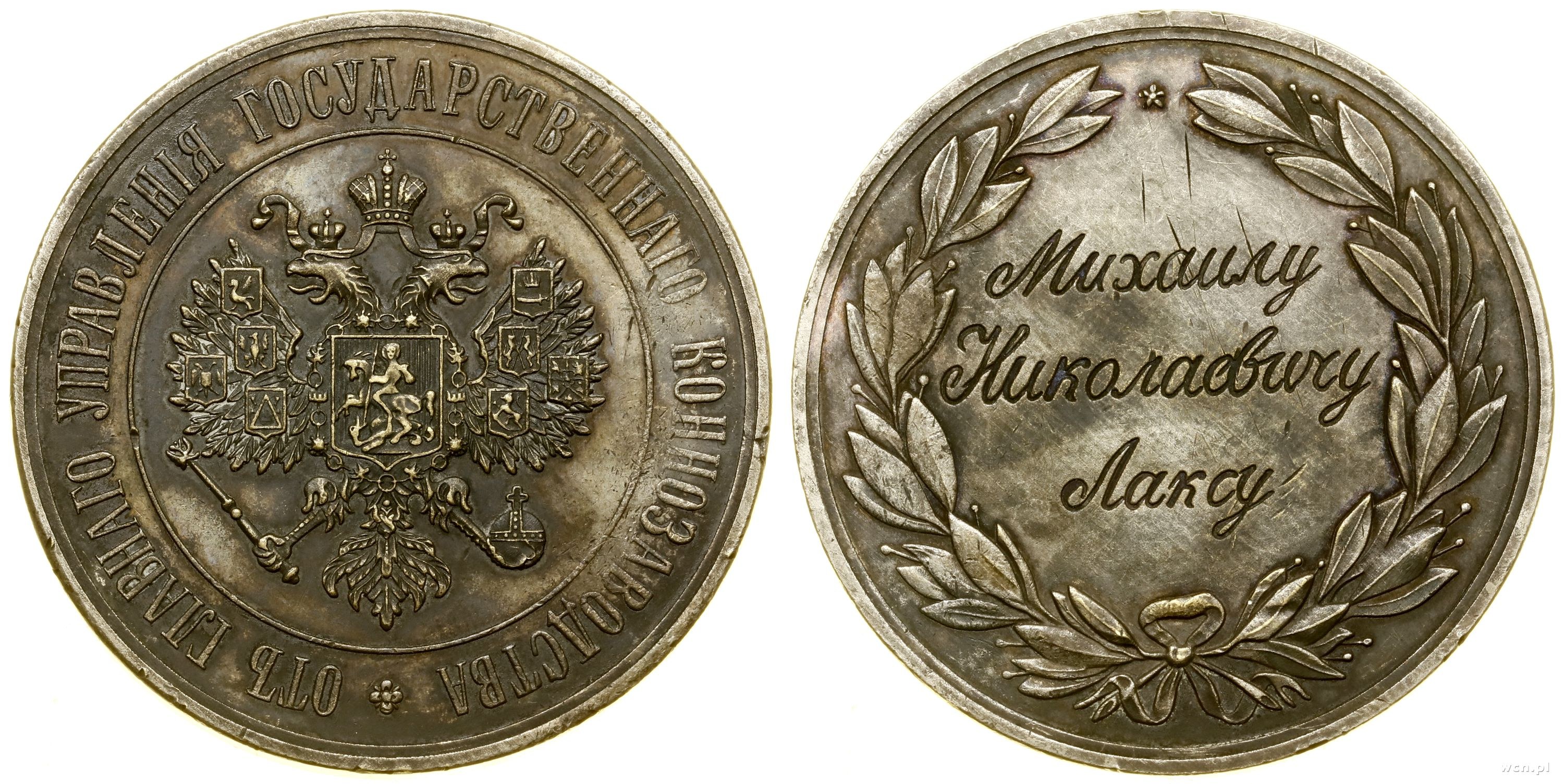 Aw: Dwugłowy Orzeł, ОТЪ ГЛАВНАГО УПРАВЛЕНІЯ ГОСУДАРСТВЕННАГО КОННОЗАВОДСТВА; Rw: Wieniec, w którym МИХАИЛУ / НИКОЛАЕВИЧУ / ЛАКСУ