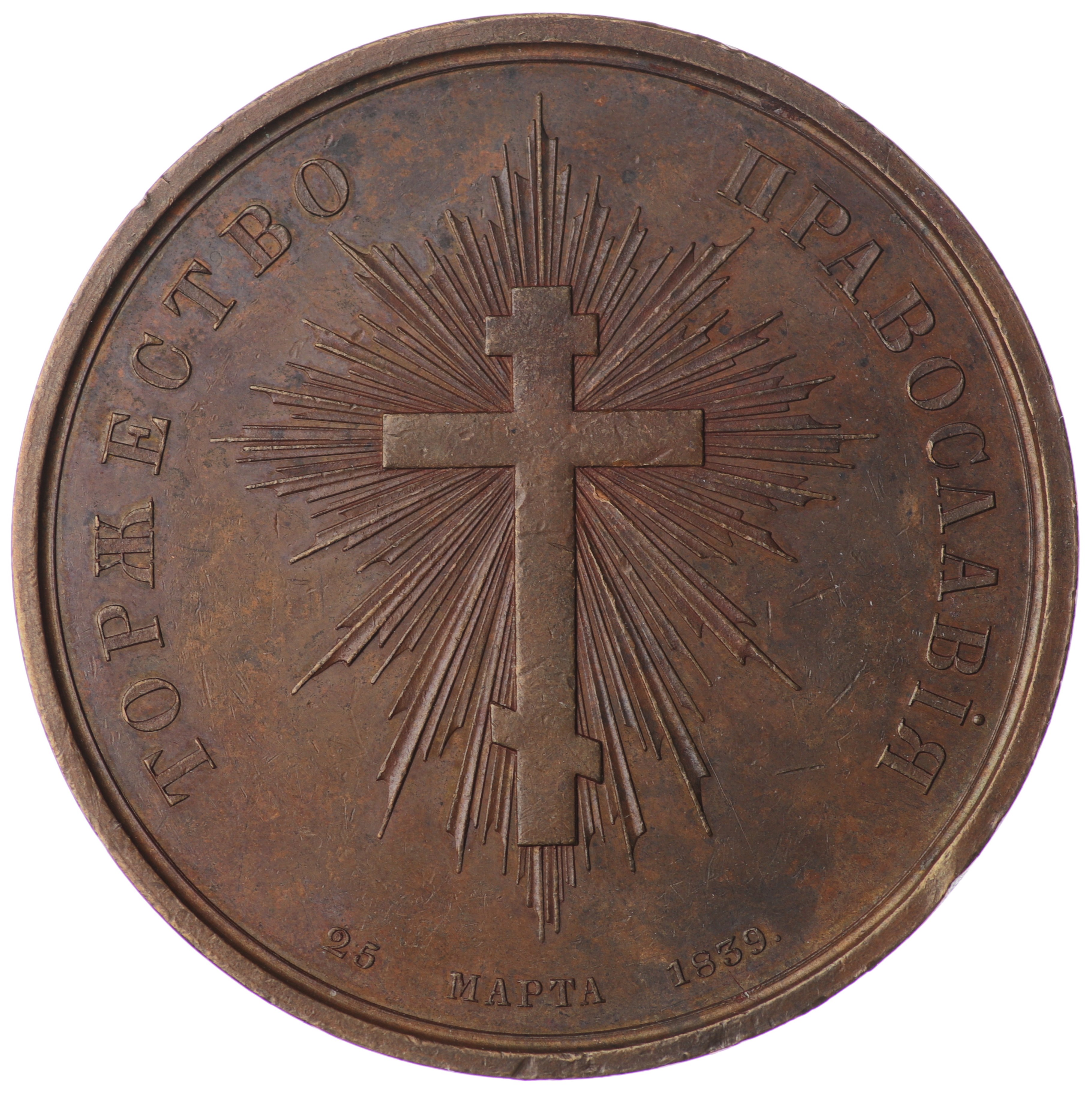 Rzadki medal, wybity z okazji zjednoczenia unitów z prawosławiem w 1839 roku.