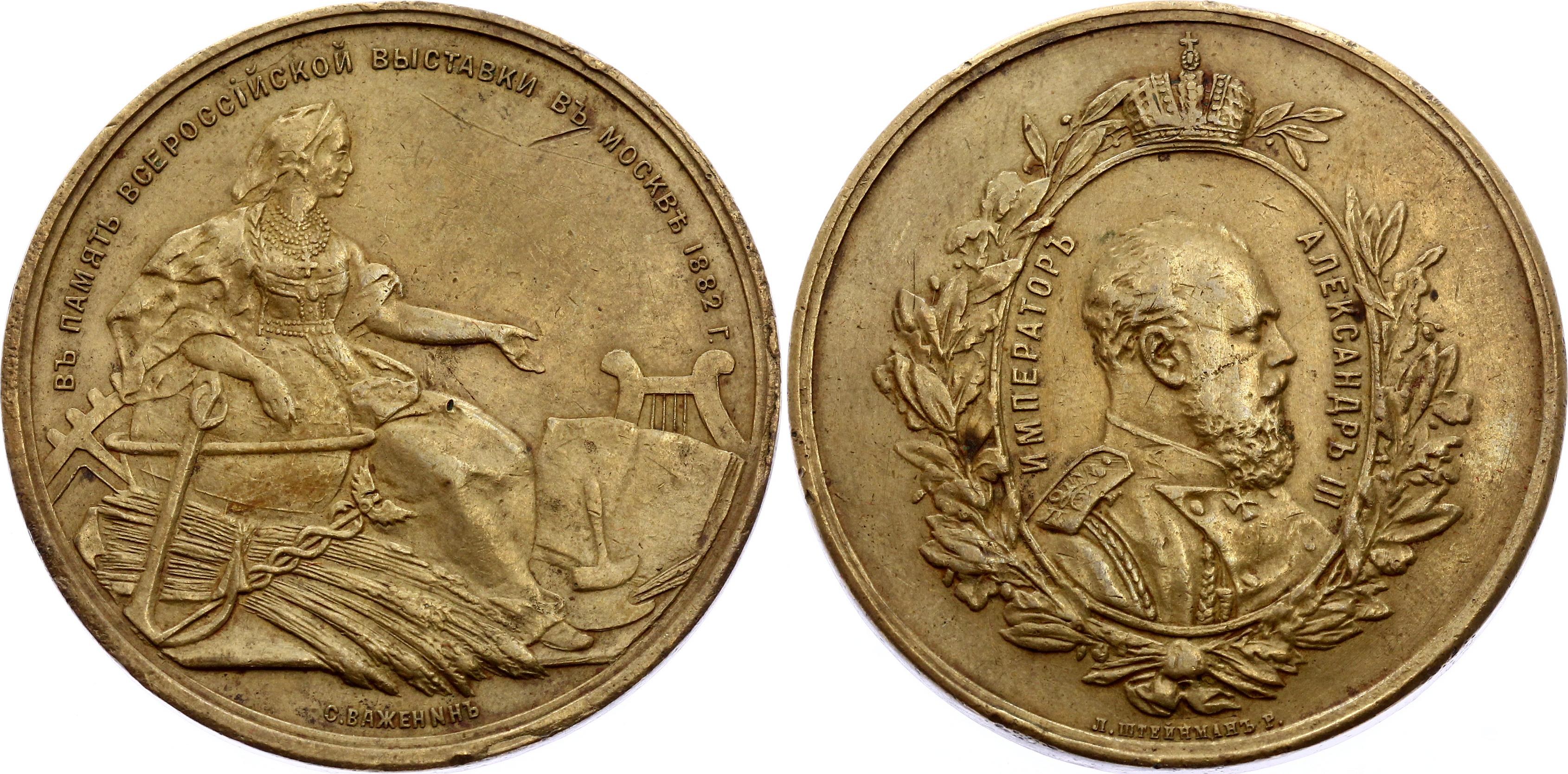 Russia Bronze Medal "In Memory of the Pan-Russian Exposition in Moscow 1882" Alexander III 1882 L. Steinman & S. Vazhenin