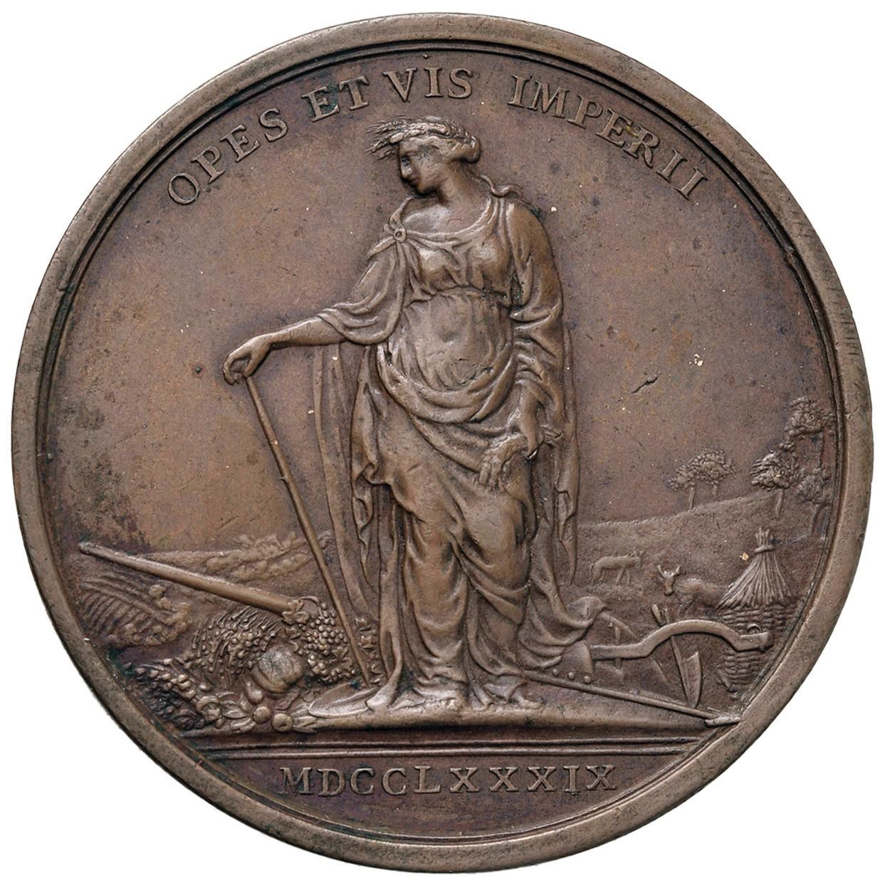 MEDAGLIE DEI SAVOIA-REGNO DI SARDEGNA. Vittorio Amedeo III (1773-1796) Medaglia 1789 Per la fondazione della Società Agraria, L' Agricoltura stante di fronte - Opus: C. Lavy - U. di S. n. 38 - R - AE (g 69,35 - Ø 50 mm) Difetti del bordo dovuti al conio e segnetti di contatti