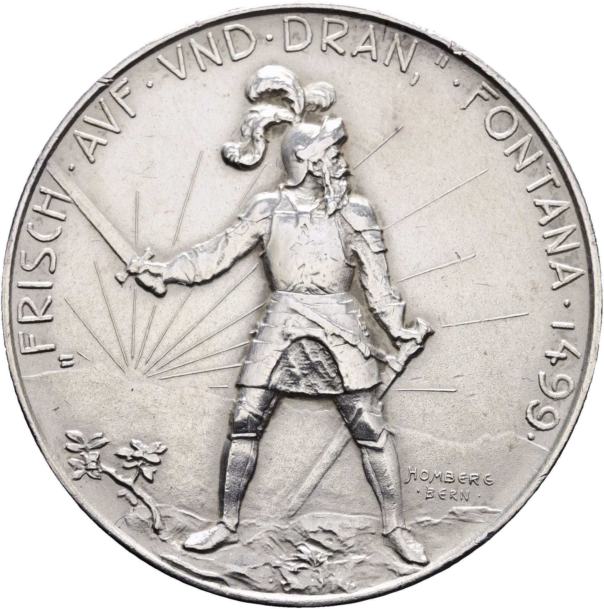 Silbermedaille auf das Graubündnerische Kantonal-Schützenfest in Chur 1900 (Schützenmedaillen Richter 840b, selten, R)