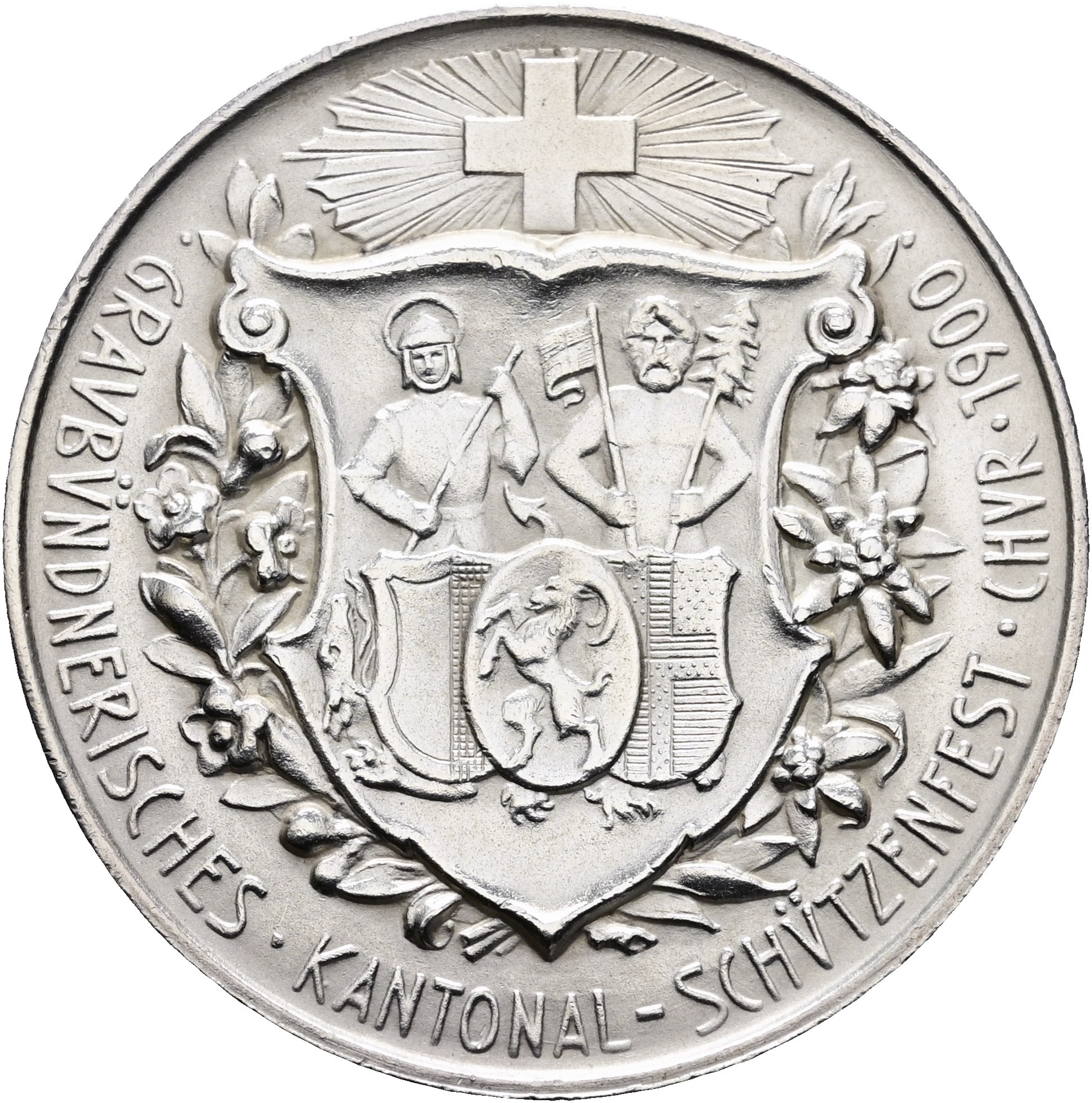 Schweiz - Graubünden - Silbermedaille 1900 - Chur, Graubündnerisches Kantonal-Schützenfest - Switzerland, Swiss Shooting Medal