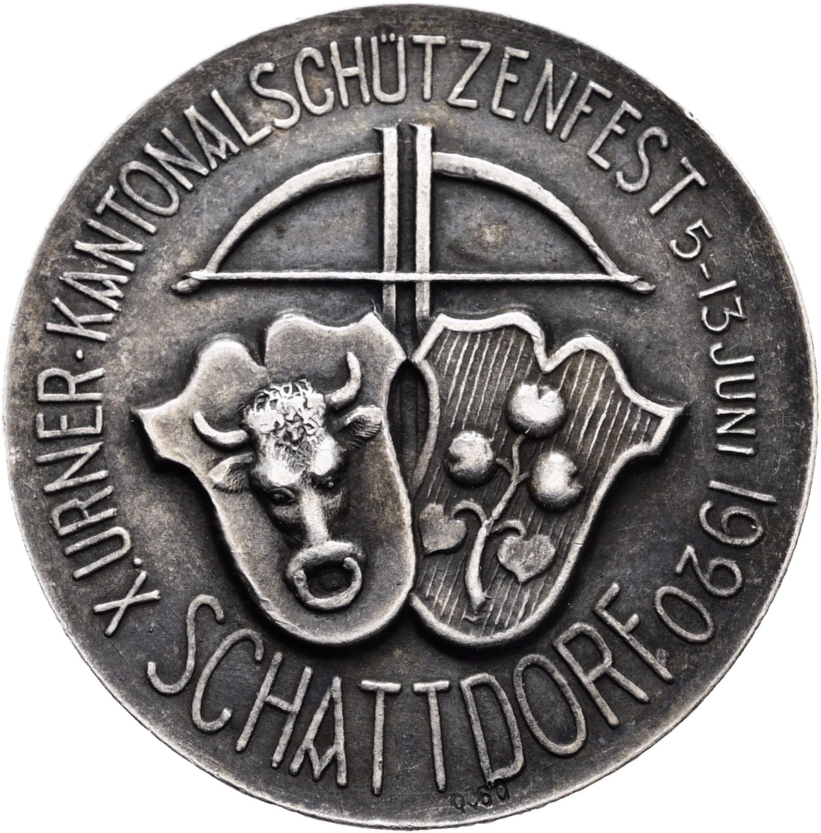 Silbermedaille auf das X. Urnerische Kantonalschützenfest in Schattdorf 1920 (Schützenmedaillen Richter 1528a, sehr selten, RR)
