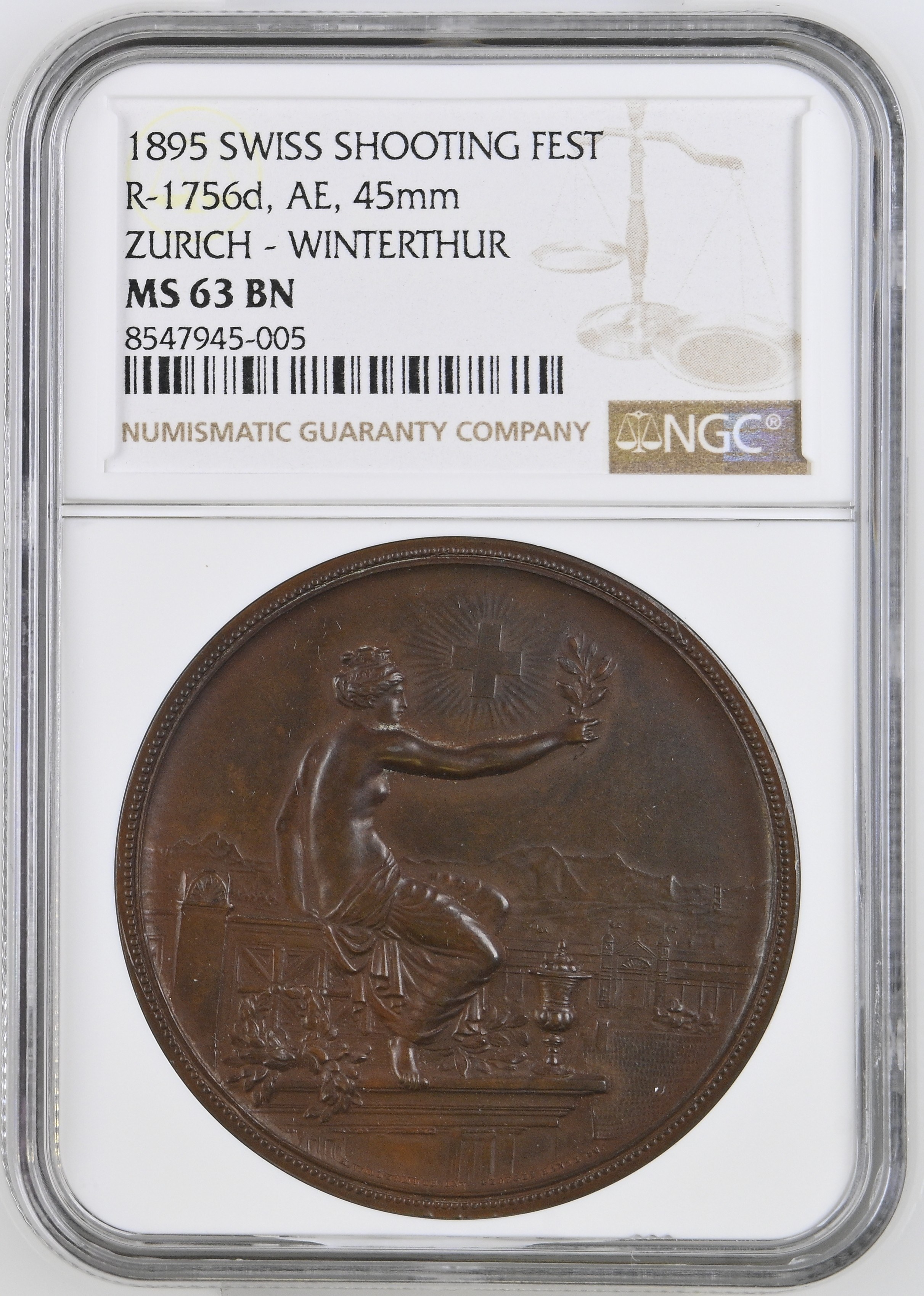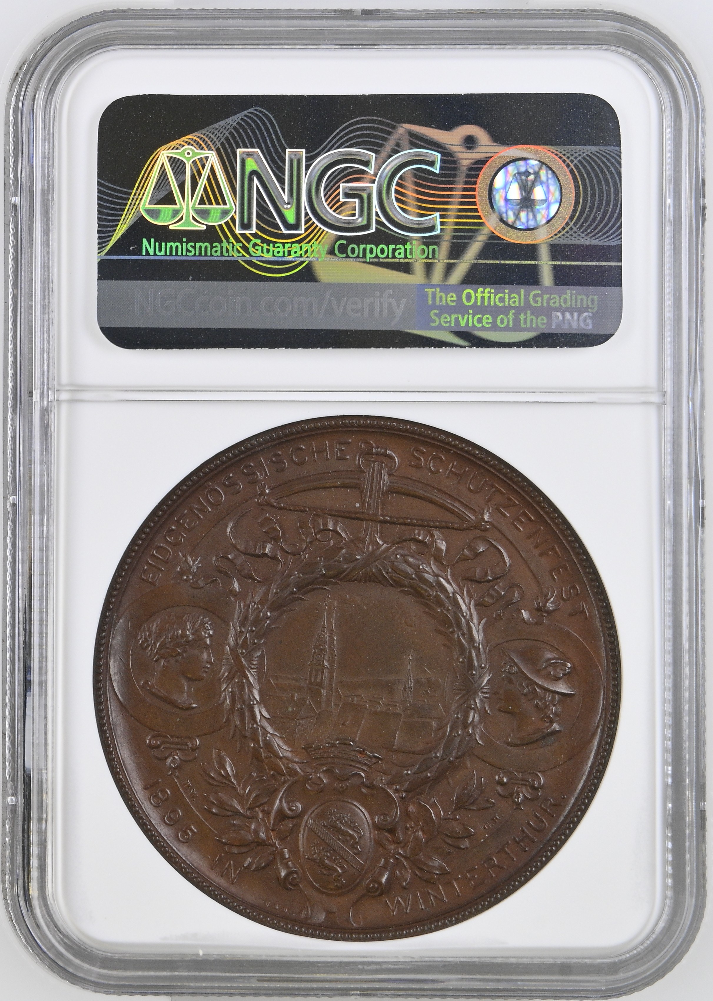 Bronzemedaille auf das Eidgenössische Schützenfest in Winterthur 1895 (Schützenmedaillen Richter 1756d). Bewertet von NGC mit MS 63 BN.