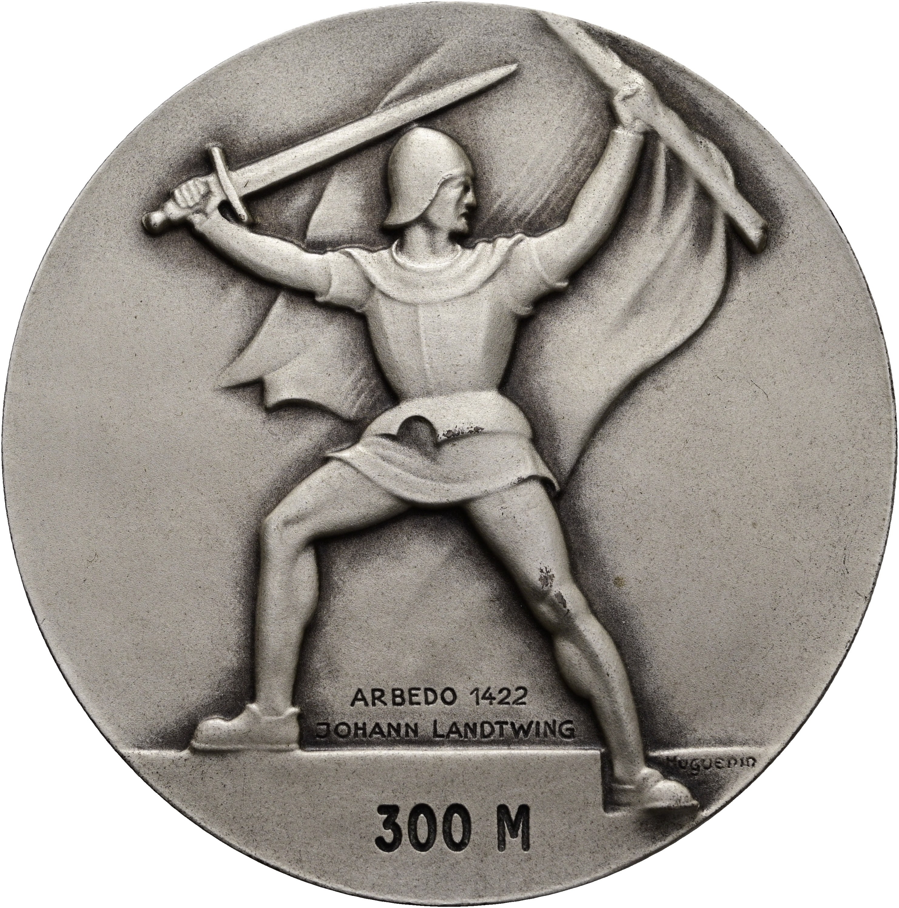 Versilberte Bronzemedaille auf die Meisterschaft des Zuger Kantonalschützenverbands (ohne Jahresangabe, Schützenmedaillen Richter 1692b)