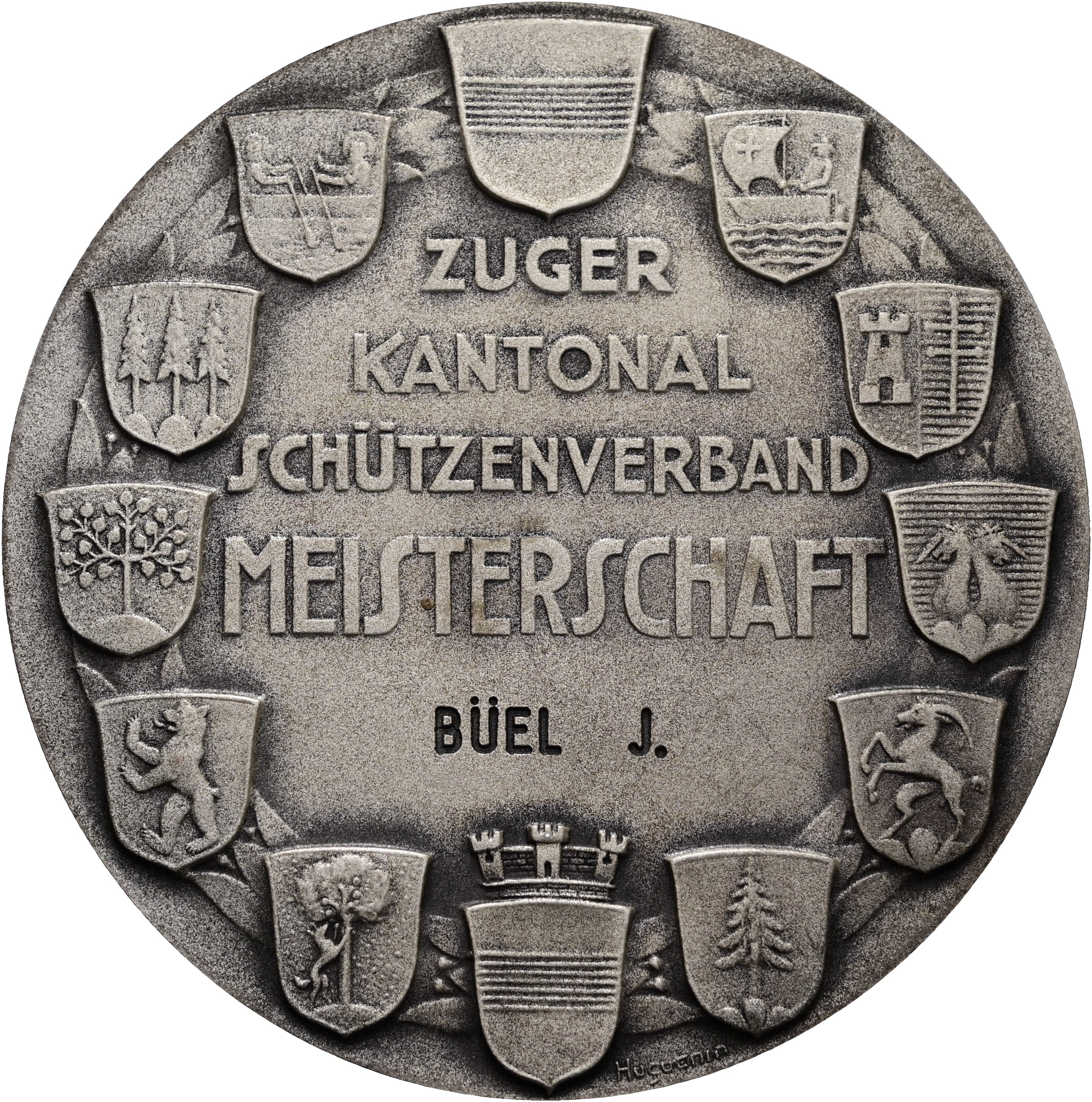 Schweiz - Zug - versilberte Bronzemedaille o. J. - Zuger Kantonalschützenverband, Meisterschaft - Switzerland, Swiss Shooting Medal