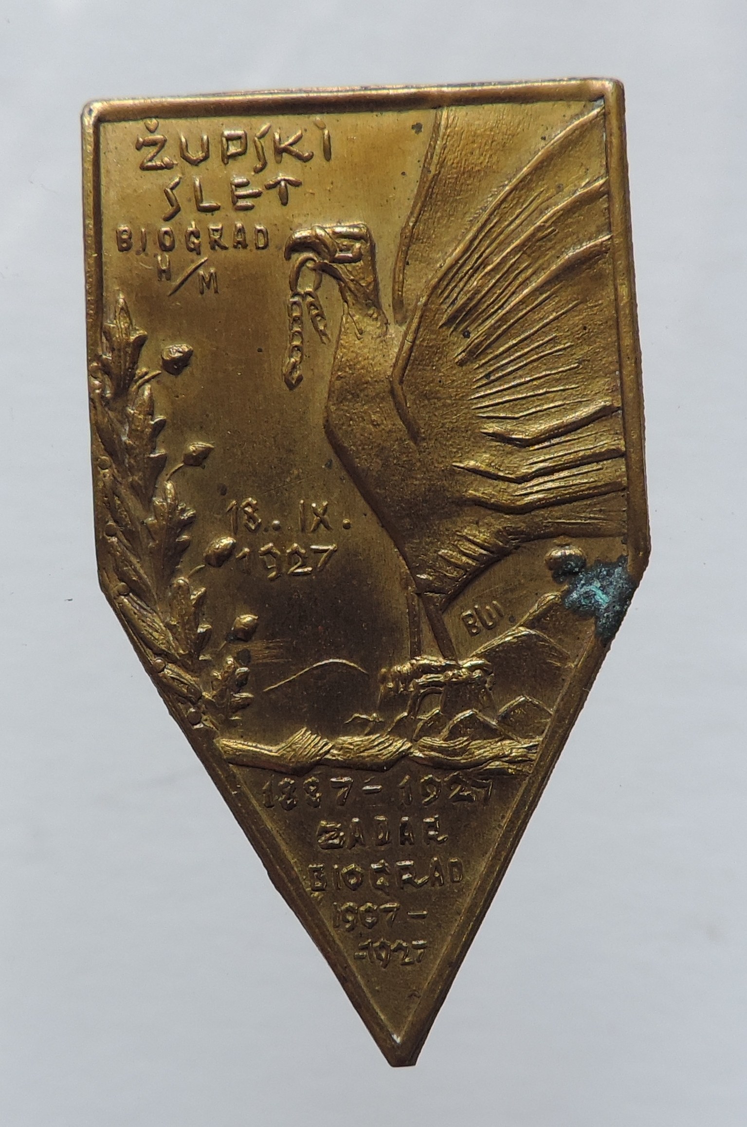 VŠESOKOLSKÉ SLETY - ODZNAKY, sokolský odznak slet Župy Biograd 1927